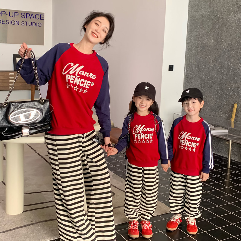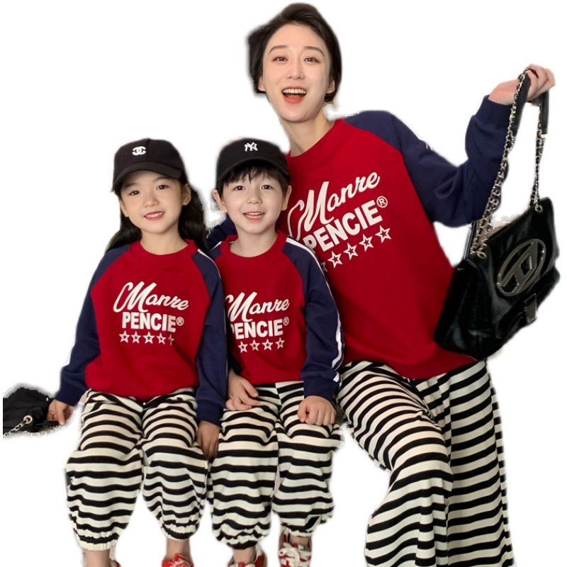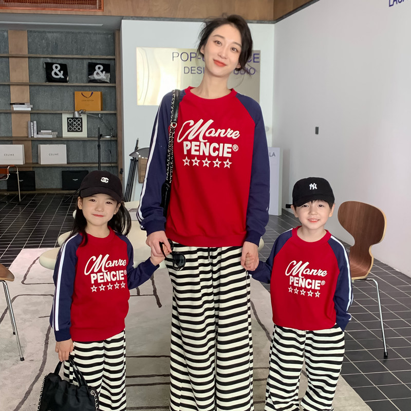 High-end pro-sub-dress Fall new female dress Shoulder Sleeves Alphabet Weaters and Mother and Child Spring and Autumn Siblings Blouses-Taobao