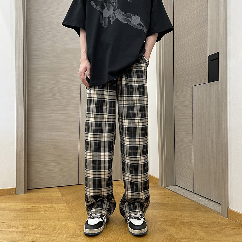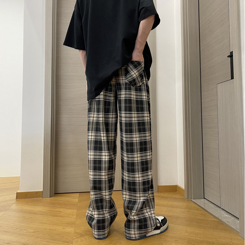 Ancient Vintage Plaid Casual Pants American High Street Vibe Pants European and American Yuppie Handsome Loose Broadlegged Pants-Taobao