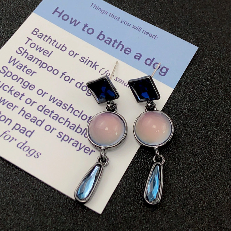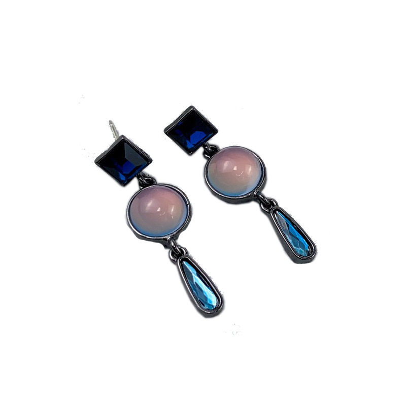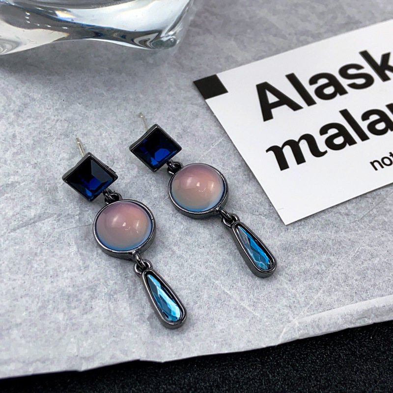 srrmhyn baroque crystal cat eye stone blue drop earrings female light luxury superior fashion temperament 100 lap-Taobao