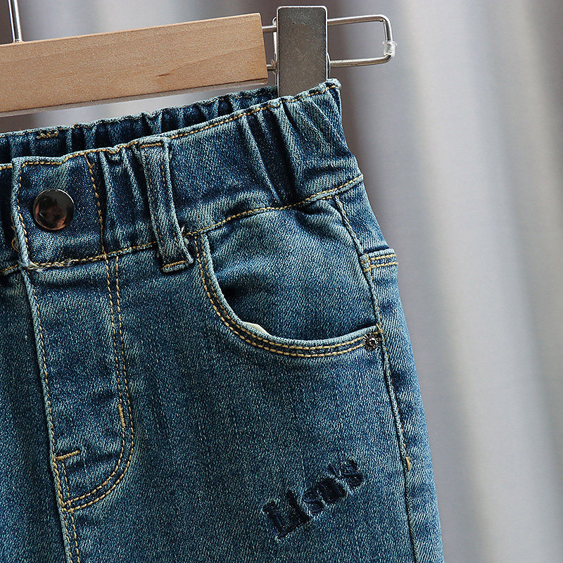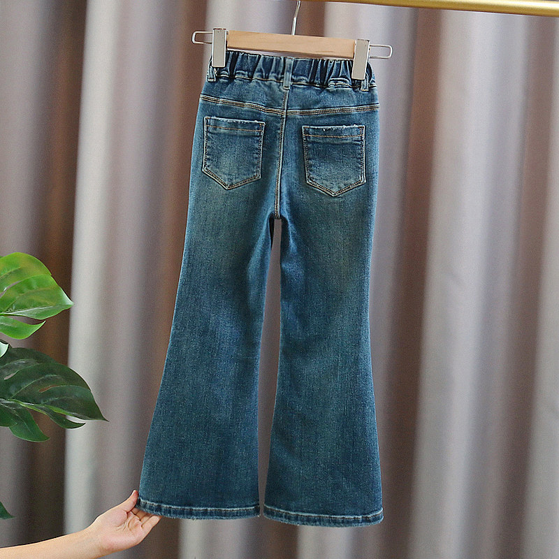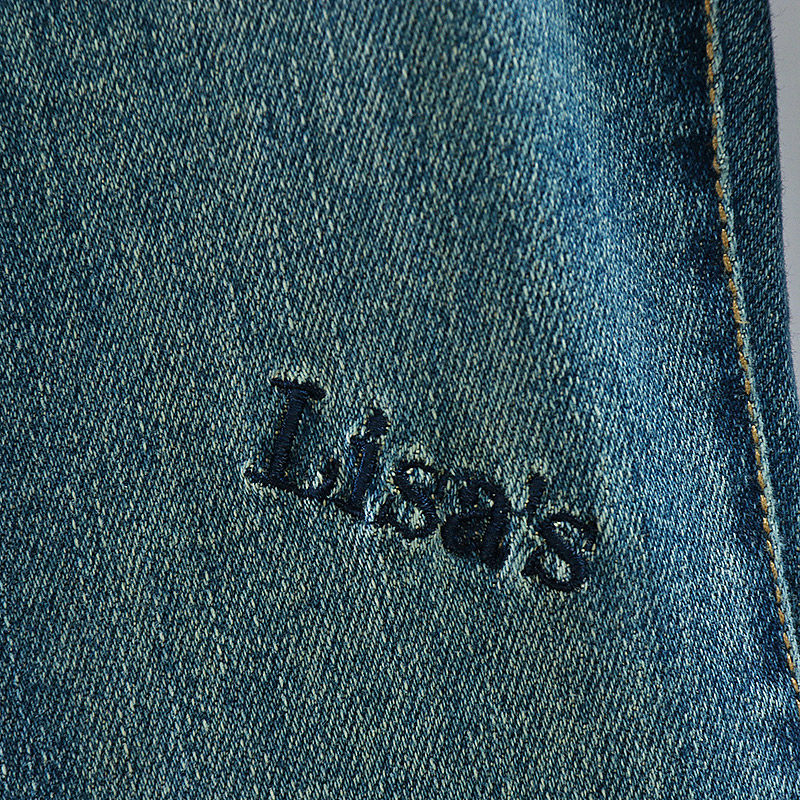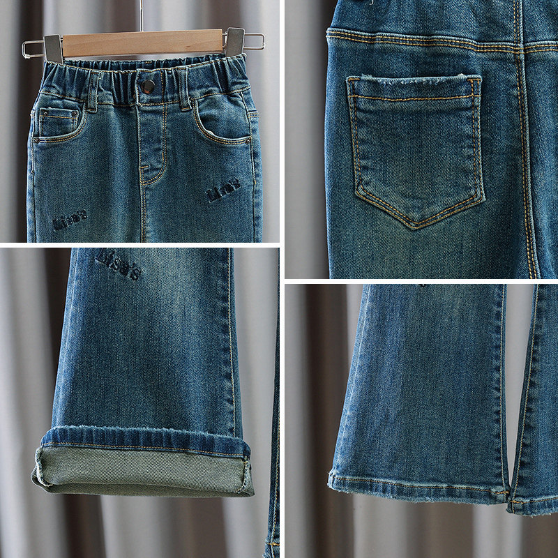 Blue Denim Horn Pants Blue Plus Suede Jeans Black Striped Sweatshirt Blue Denim Pants White Shirt Blue Denim Pants Apricots Color Shirt Blue Denim Horn Pants Add Suede