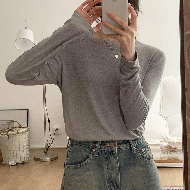 Homemade ~ Maillard wears a lap mask T-shirt woman 2023 spring autumn season pure color long sleeves with lean undershirt blouses-Taobao