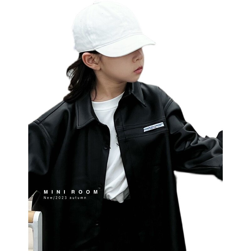 Boy's leather clothes autumn style 2023 Korean children clothes children foreign air soft loose pure color pu leather shirt handsome gas jacket-Taobao