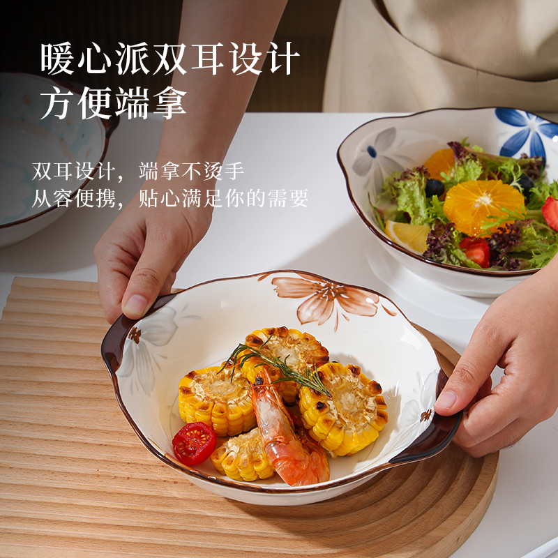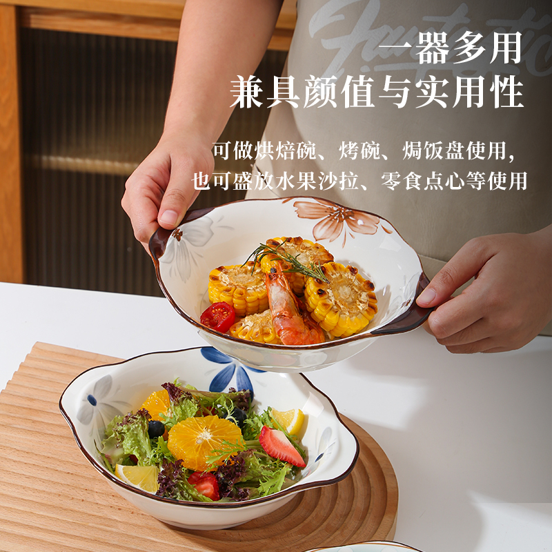 Double Ear Bowl Air Fryer Grilled Bowl Ceramic Cutlery Home Salad Bowl Deep Dish Soup Pan Ovens Baking Pan Oven with -Taobao
