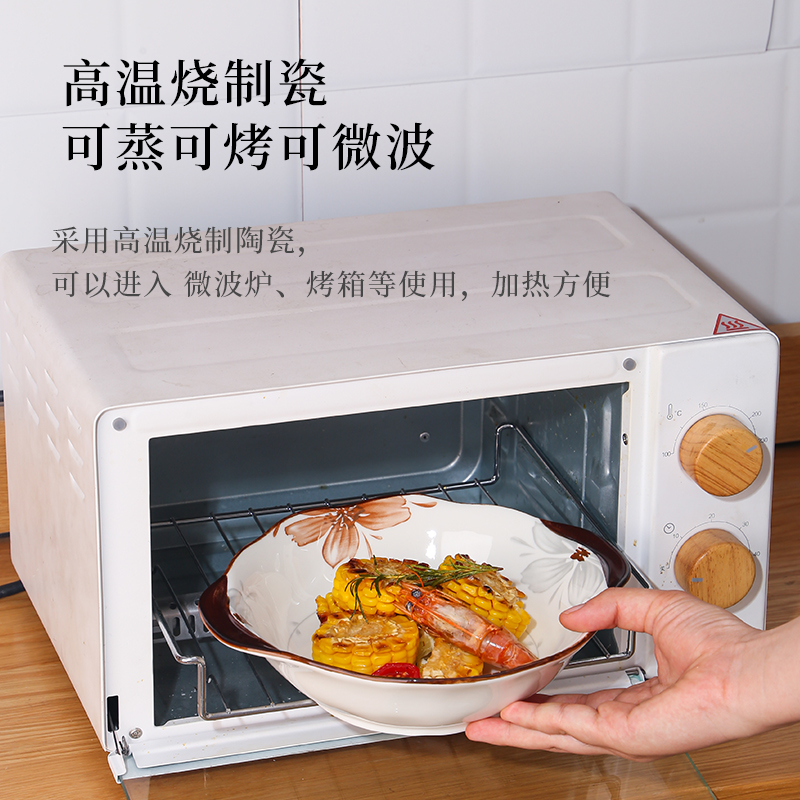 8 5-inch binaural baking bowl with water ink wineward 8 5-inch double-ear baking bowl Spring Huaqiu Real 8 5-inch double-ear baking bowl Dream pen raw flowers 8 5-inch double-ear baking bowl year-old Toshio