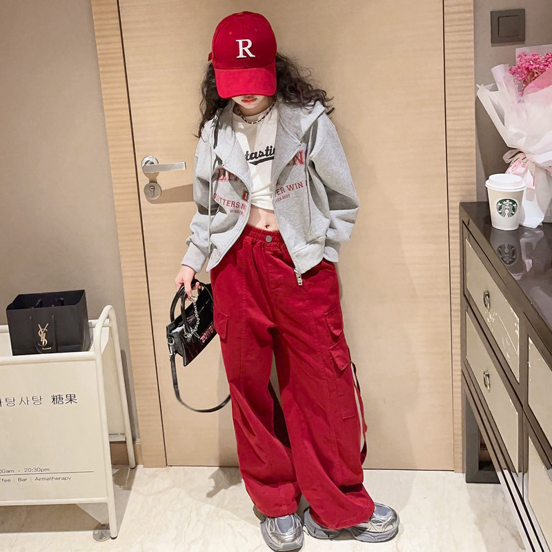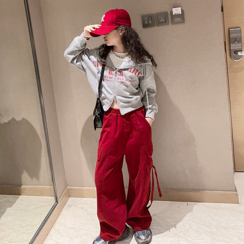 Children's Street Dance Tide Women's Big Boy Scout Hip Hop Performance Engineering Pants Suit American Children's Dance Pants-Taobao