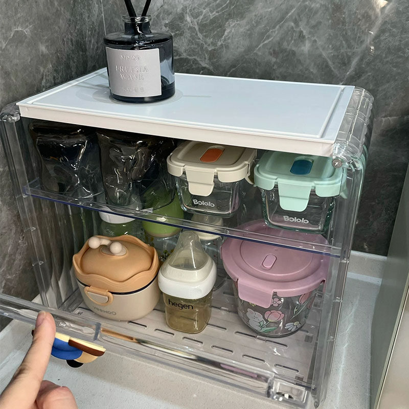 Transparent-bottle containing cabinet through brown-bottle containing cabinet through green-bottle containing cabinet transparent-double drawer with transparent-three drawers