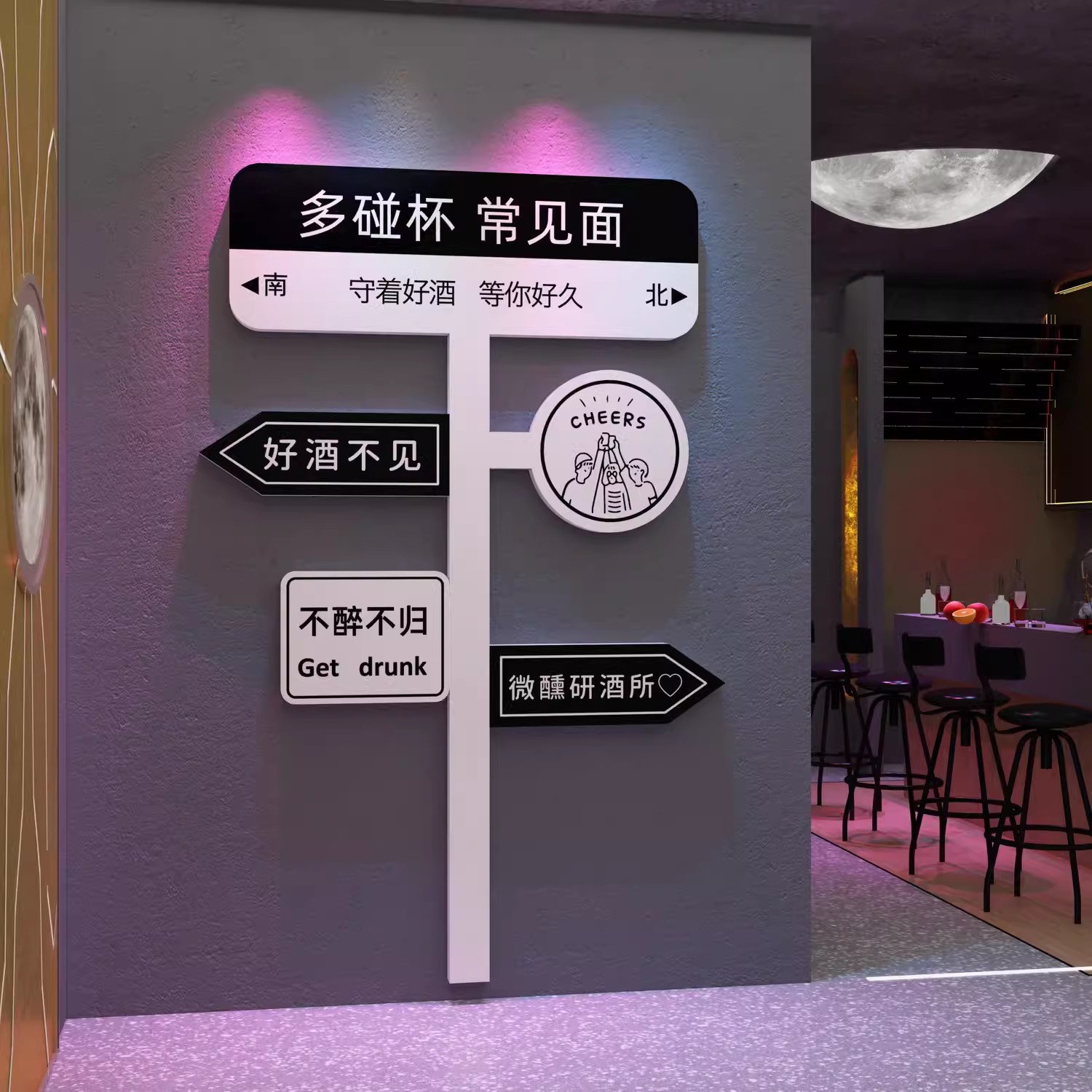 Bar decorations Scene Placement Network Red Industrial Wind tavern Beat Card Photo Area Barbecue shop Creative Decorative Wall-Taobao