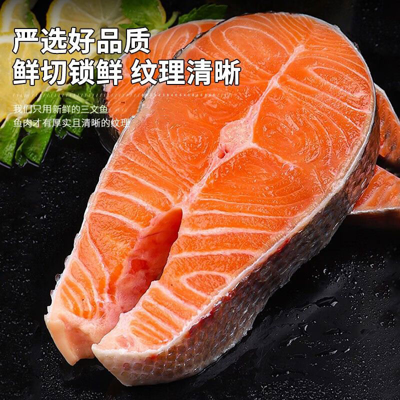 Import Wheel Cut Salmon Row Non Iridescent Trout Midsection Norwegian Thick Cut Fresh Frozen Fish Pickpocket Salmon Head Side Corner Material-Taobao