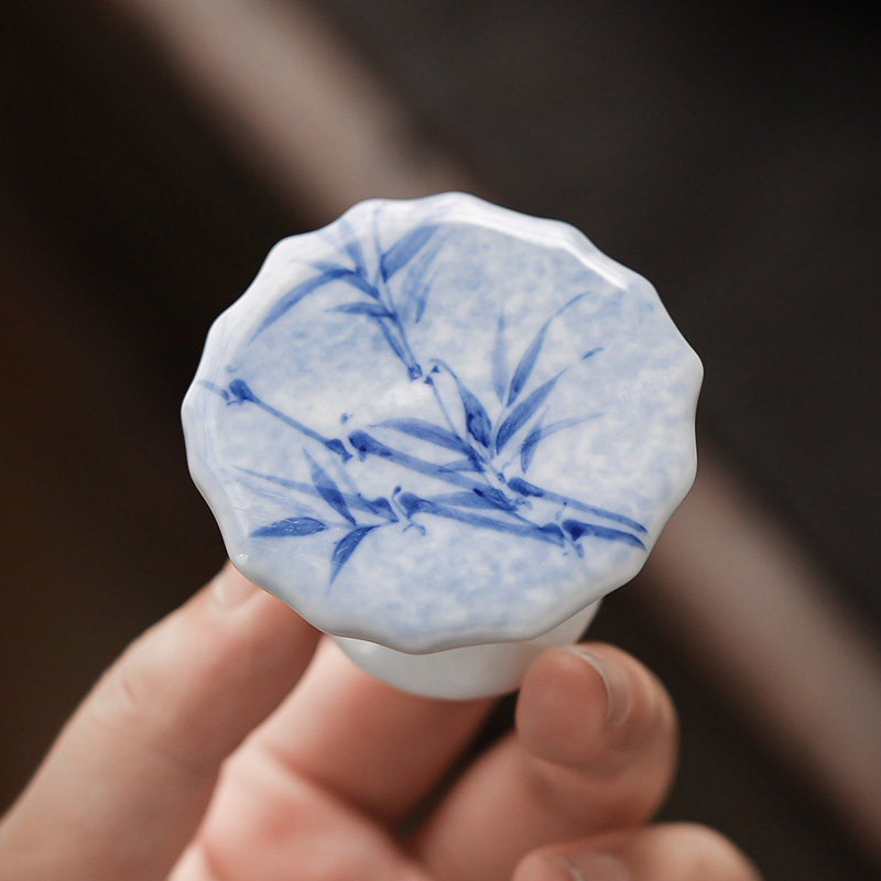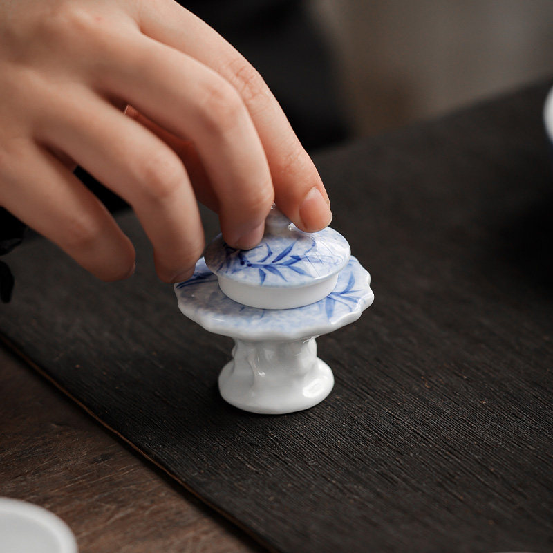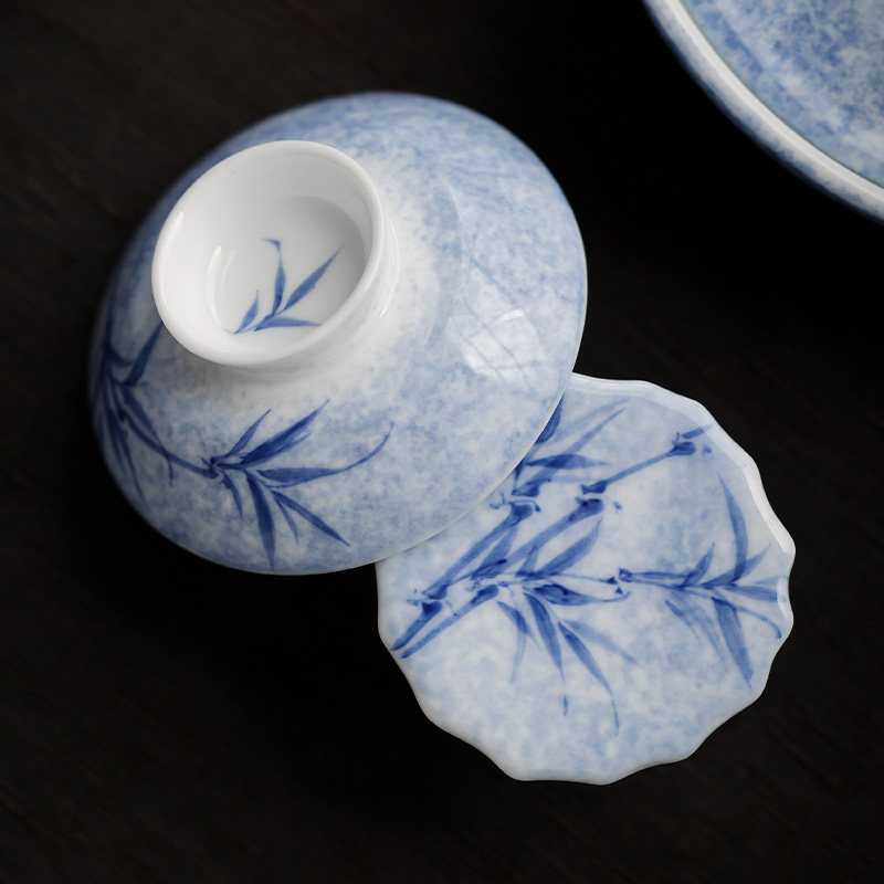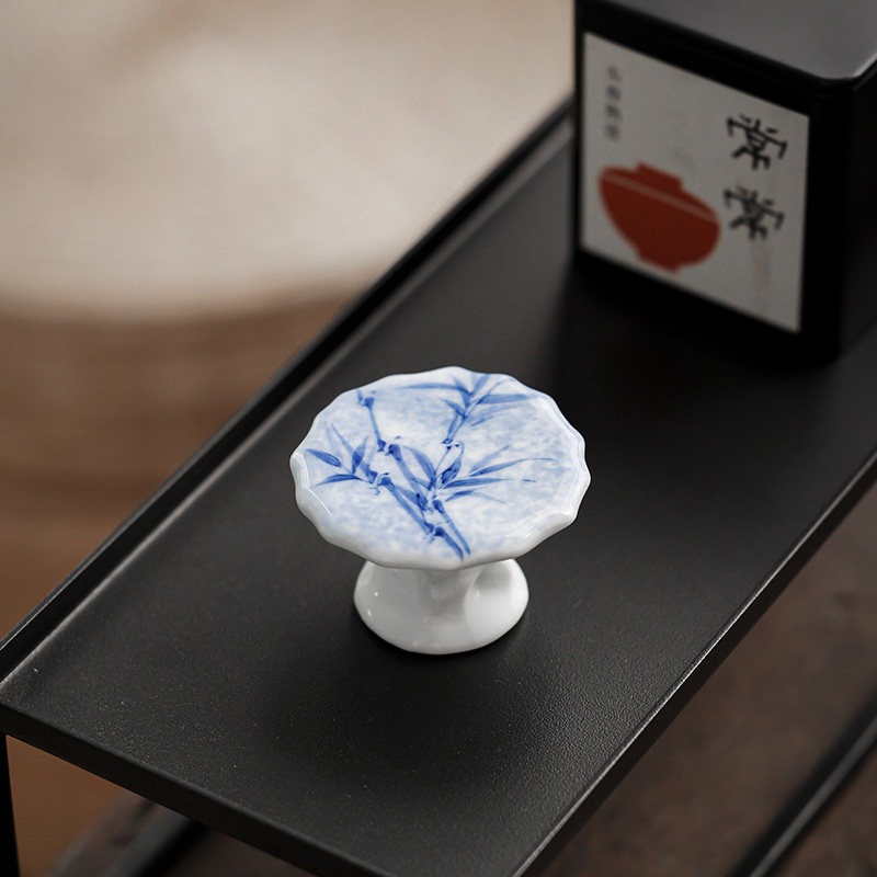 Pure hand painted ink dyed green bamboo cover Lid Tray Chinese High-end Zen ceramic Porcelain Purple Sand Tea Set Mat Tea Road Accessories-Taobao