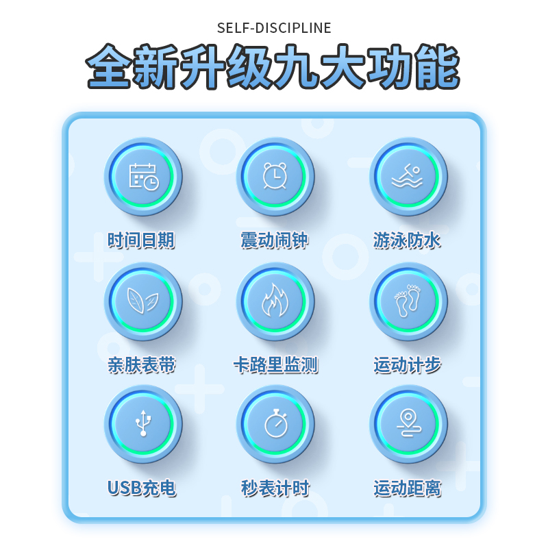 Black top fit version (silent shock alarm clock★50 m swimming waterproof★LED display) white top fit version (silent shake alarm clock★50 m swimming waterproof★LED display) foggy blue top