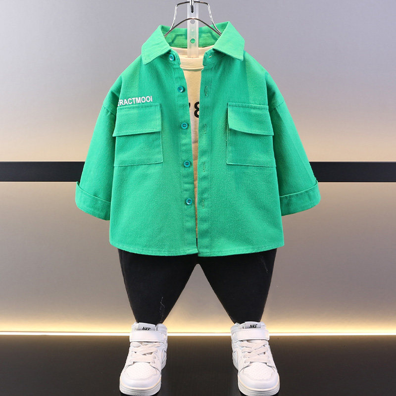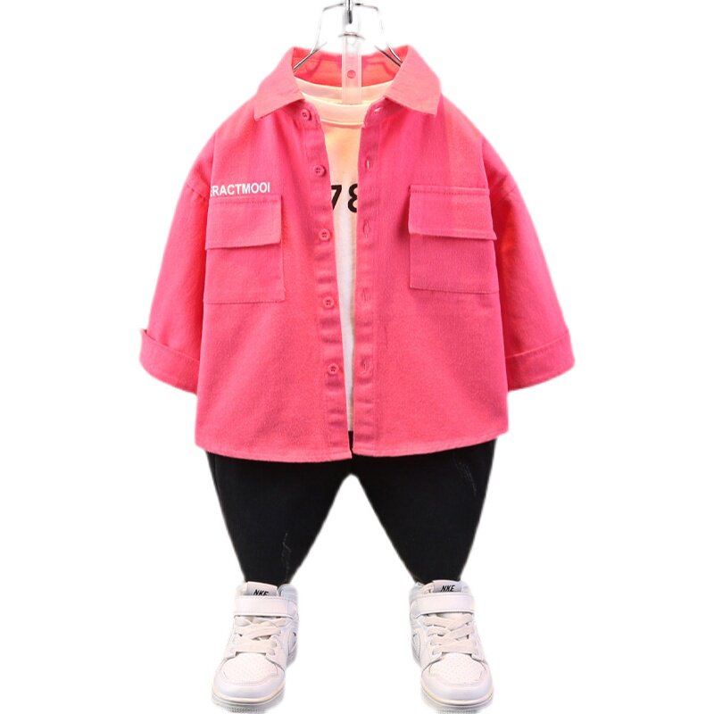 Boy uppie handsome shirt pink spring autumn 2023 new children lining clothes foreign air trendy autumn clothes children's autumn blouses-Taobao