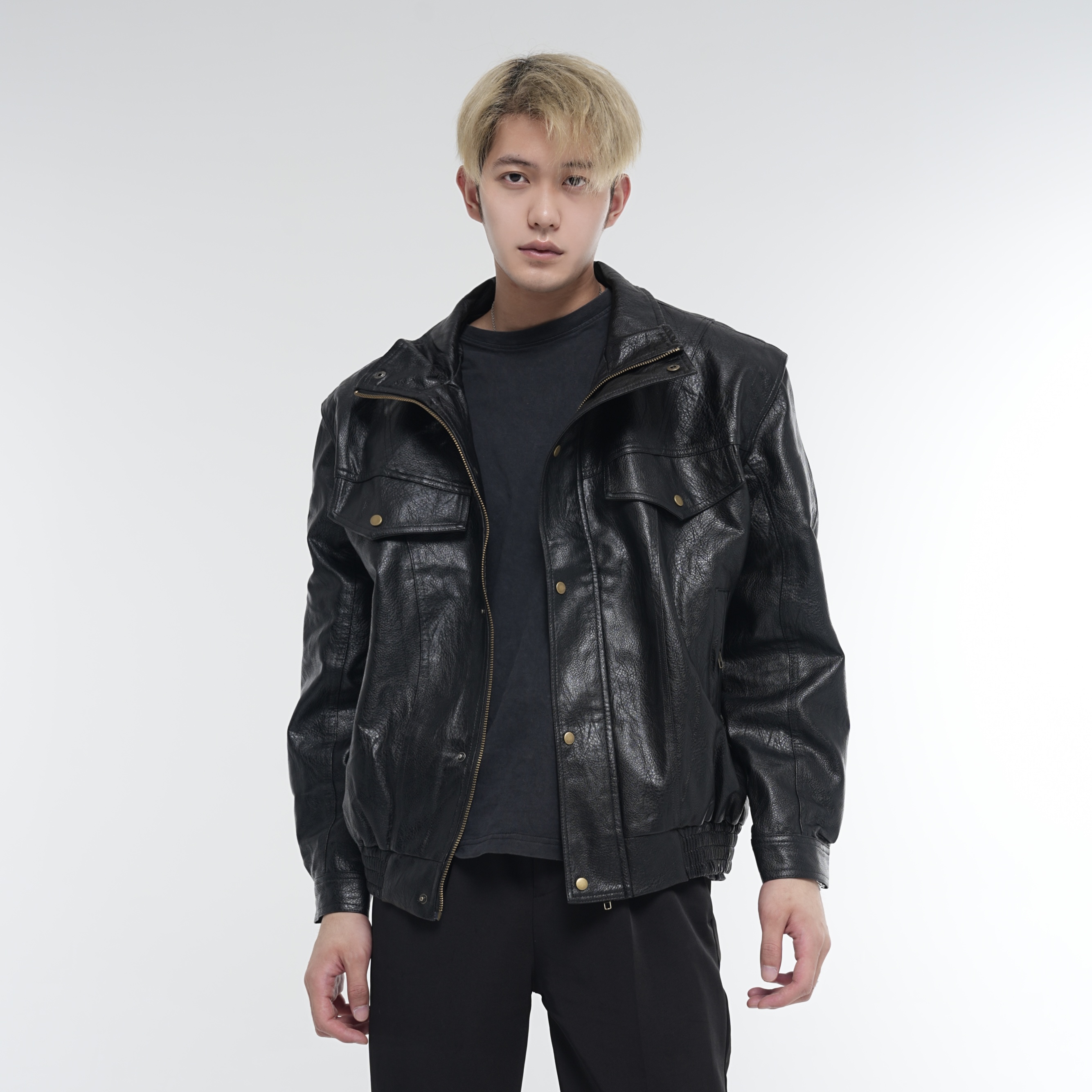 LINYILUCK autumn turnover locomotive clothes leather clothes men loose trend ruffled casual pu leather jacket jacket-Taobao