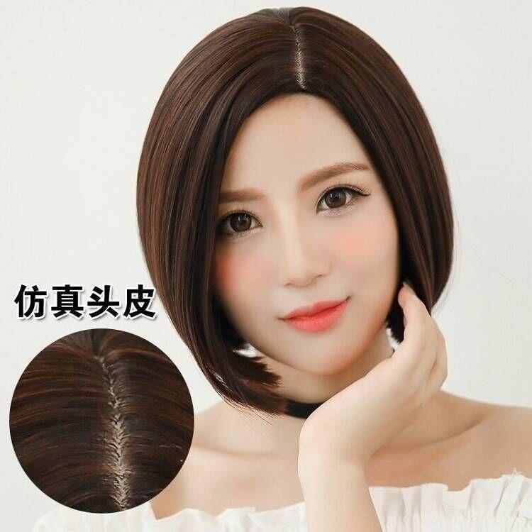 Wig woman short hair realistic short straight hair natural fluffy wave head slanted Liu Hai handsome gas fashion natural full headgear-Taobao