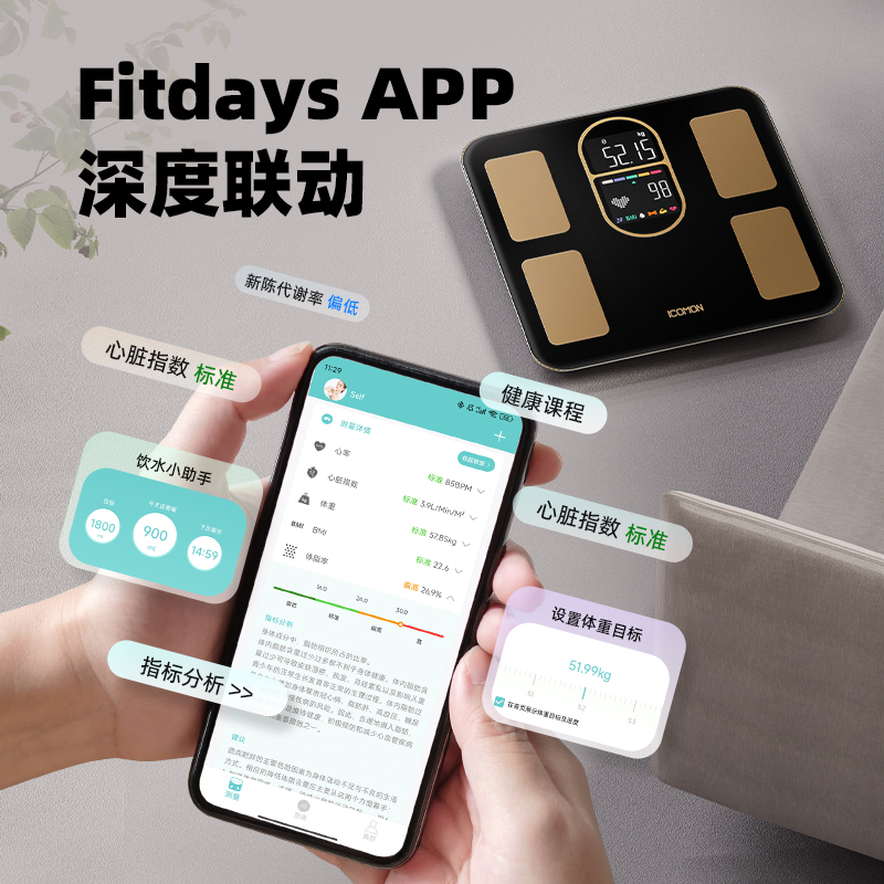 Bluetooth connection intelligent analysis comparison body fat and water test BMI evaluation Bluetooth transmission