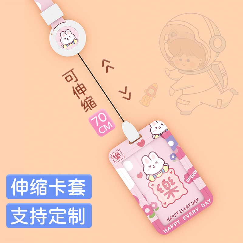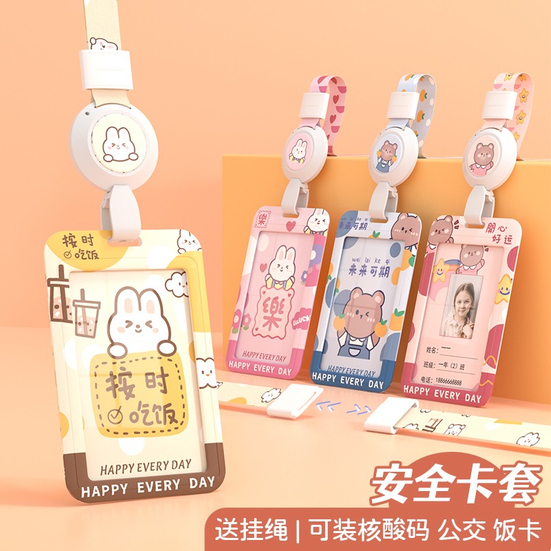 Bus cutting card student anti-loss hanging neck with hanging rope transparent children's campus cute bus meal card protective sleeve with hanging rope telescopic work card customized chest card Kindergarten School Card Shuttle extension buckle-Taobao