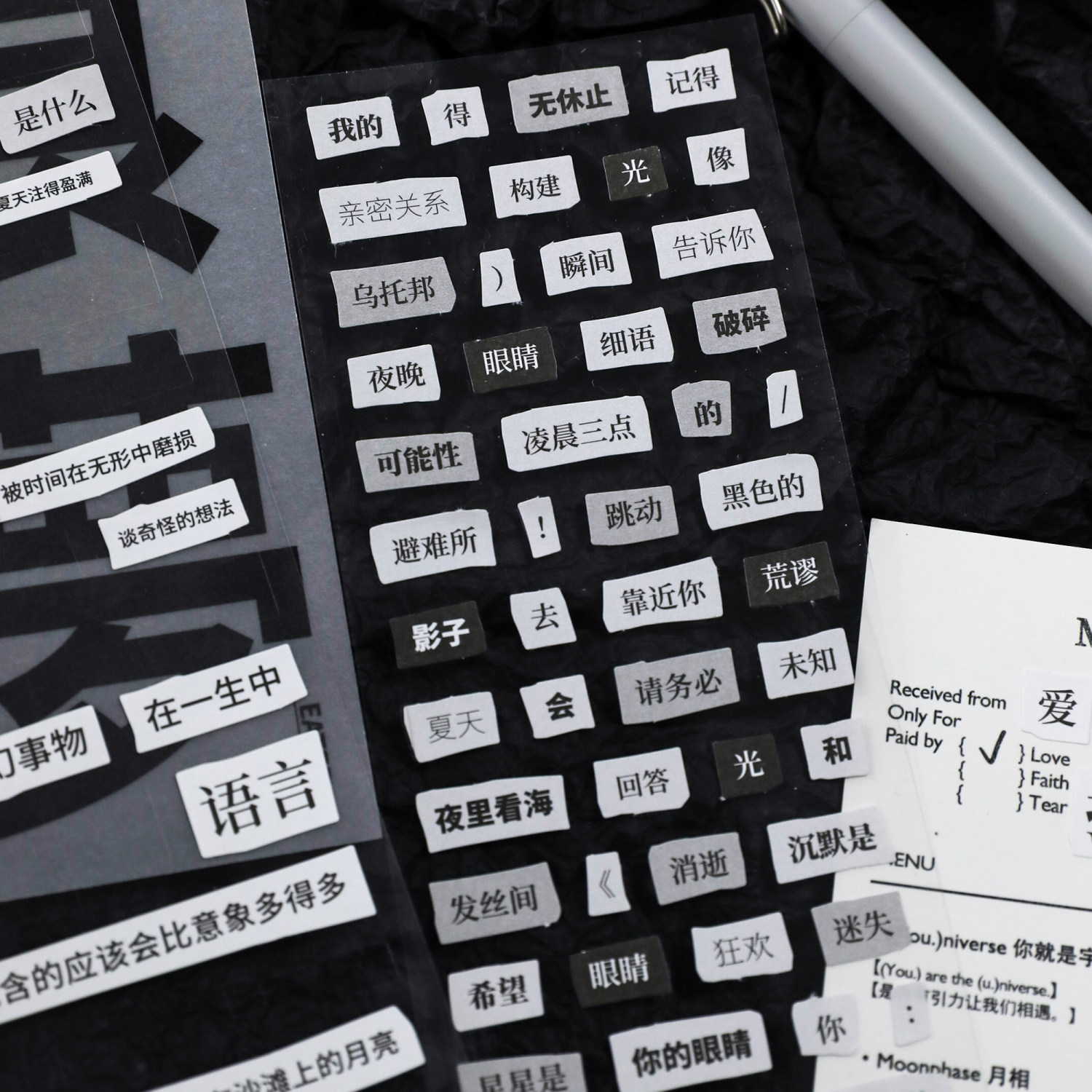 slim collage into poetry and character coo card decoration stickers black and white hand account material chasing starry small card creative hand bill stickup-Taobao
