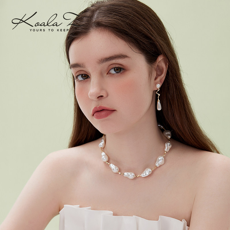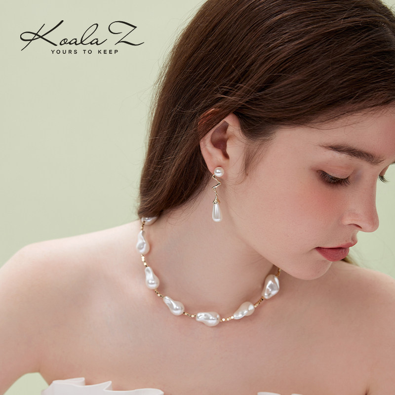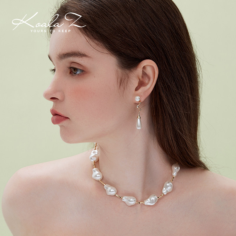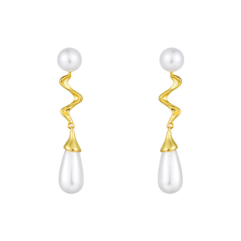 (polyline water drop) style advanced senses European and American temperament metal pearl earrings without earhole ear clip suitable for round face-Taobao