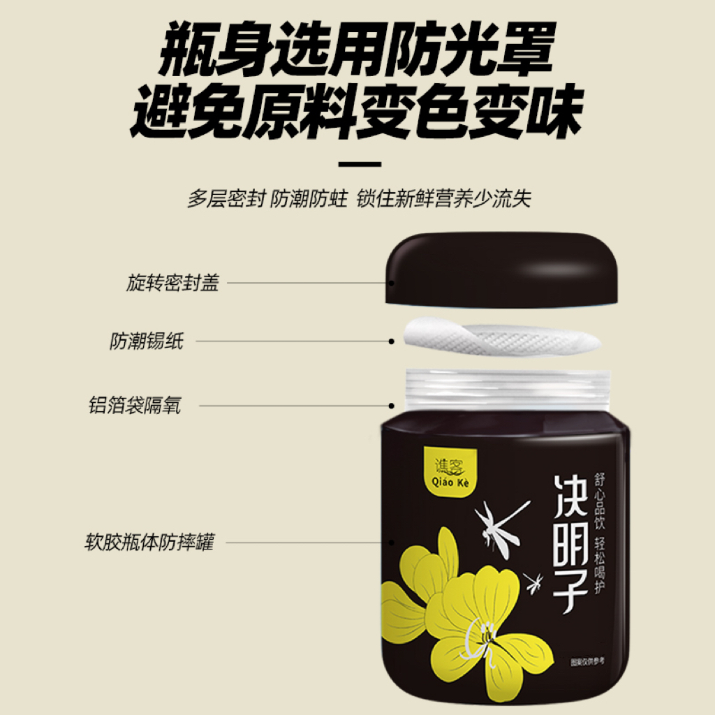 (TRIANGULAR PACKAGING TASTING) A total of 20 packs (handmade selected large semen cassiae) 1 jar 450 gr (handmade selection of large semen cassiae) 2 cans of 900 gr (Semen Cassiae) for a total of two cans