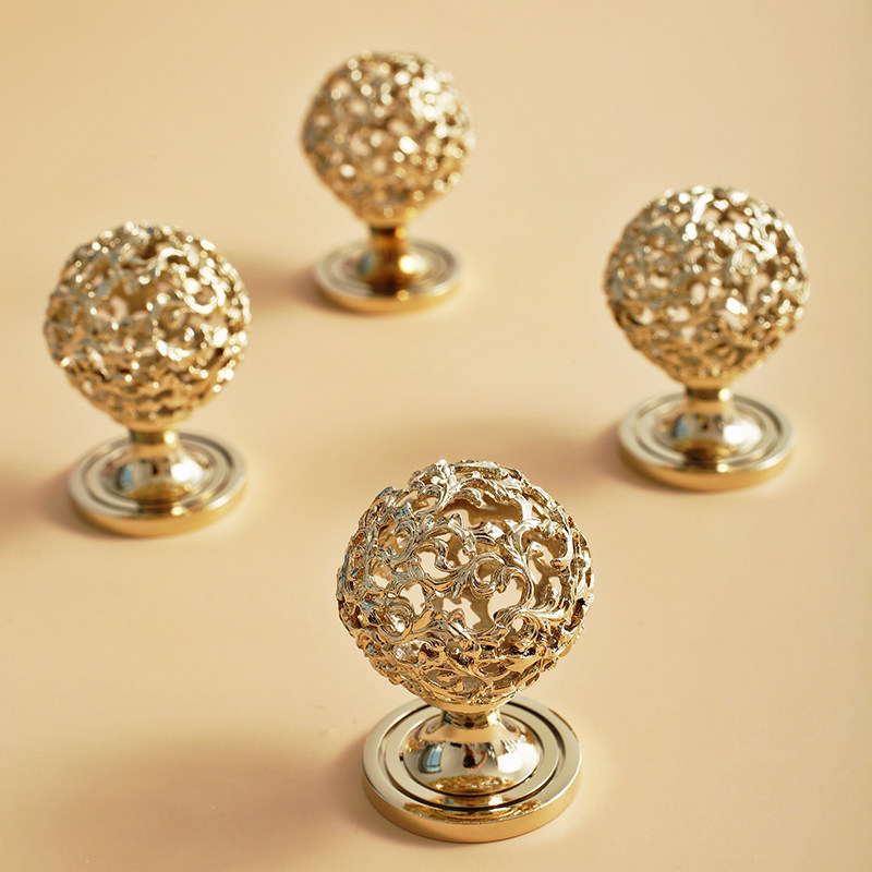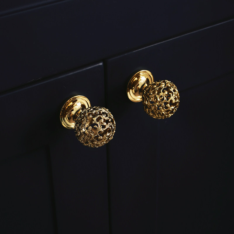 indioors original design method-style retro golden cabinet door handle wardrobe door drawer brass hollowed-out spherical pull-Taobao