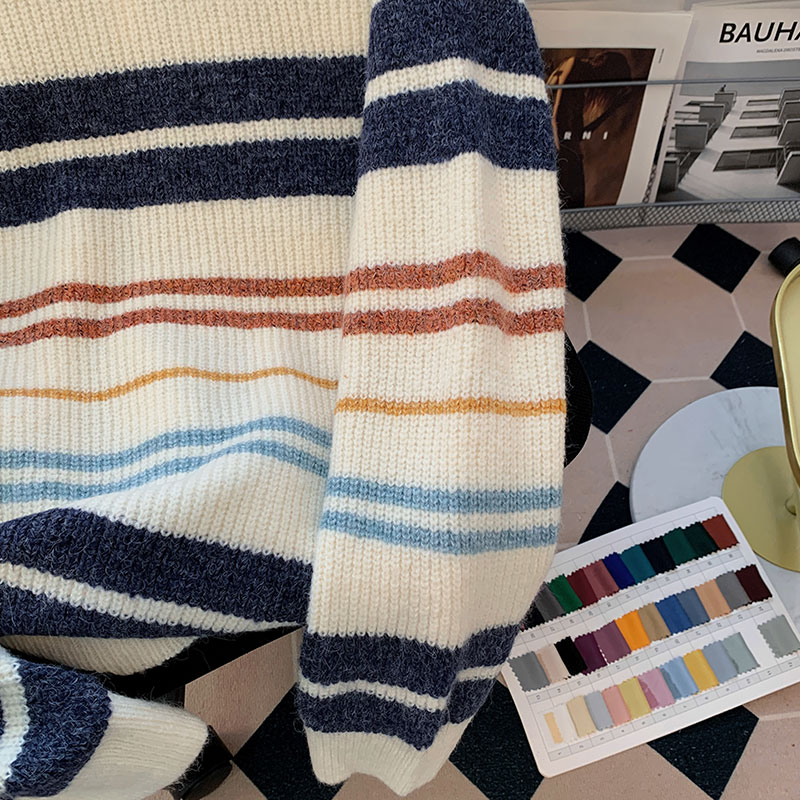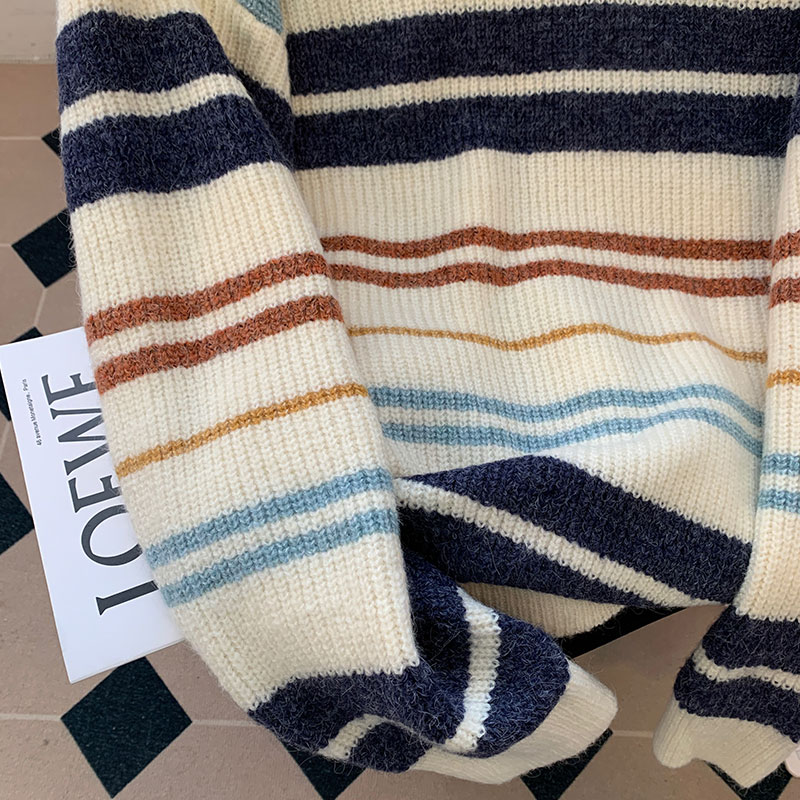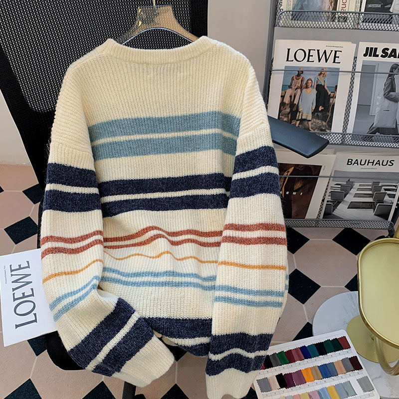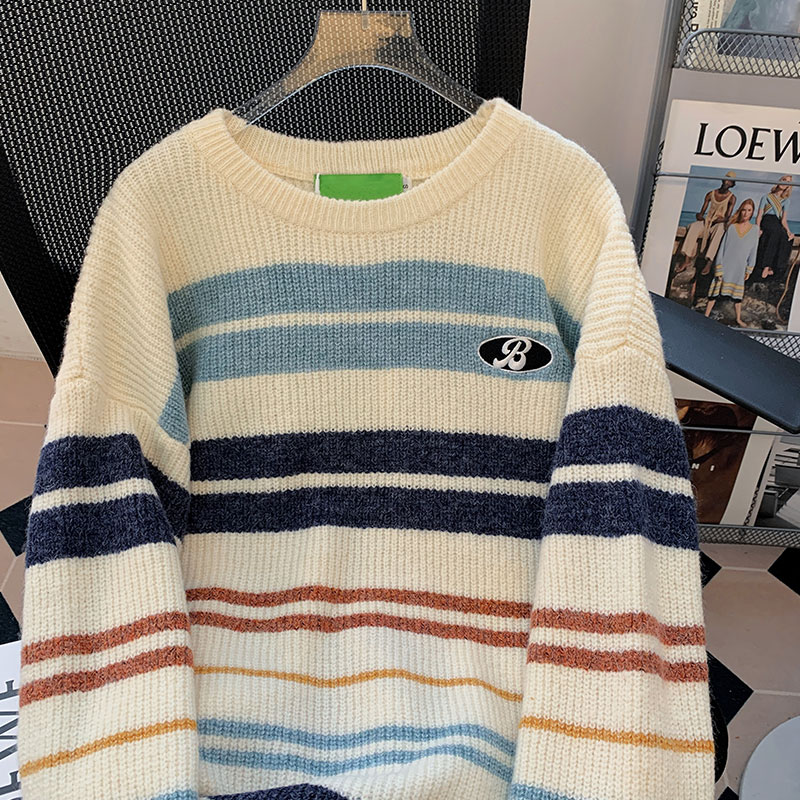 College Wind Strips Gross Crowsize Oversize Couples Needleshirt Day Ensemble Letters Embroidery Loose Casual Sweater Women Tide-Taobao
