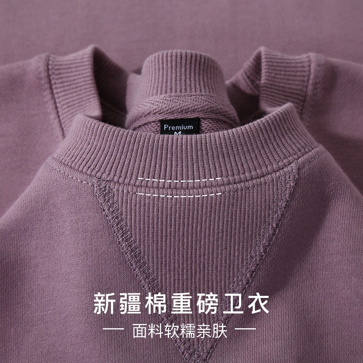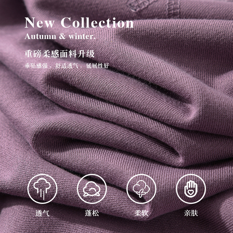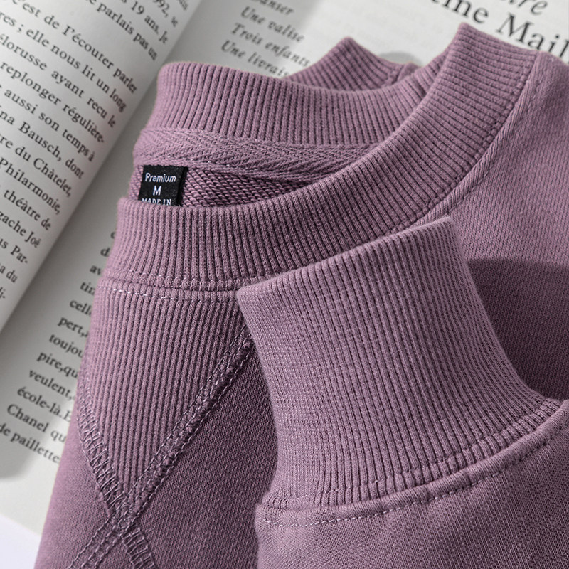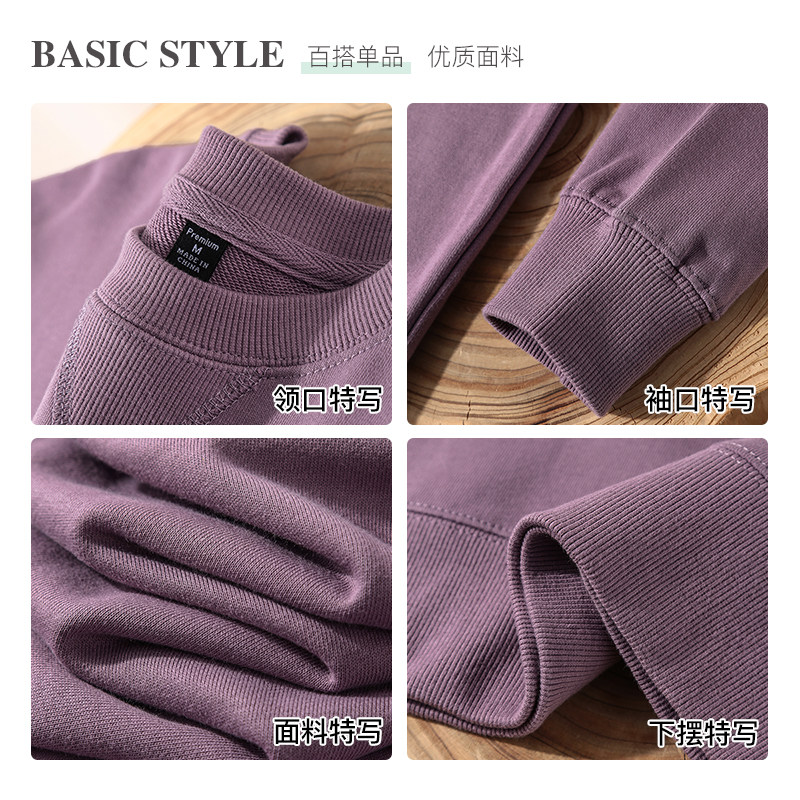 Morandi foggy Haze Purple Comfort Mound Cloth 340g Heavy Pound Pure Cotton Loose Round Collar Long Sleeve Sweater Women's Autumn-Taobao