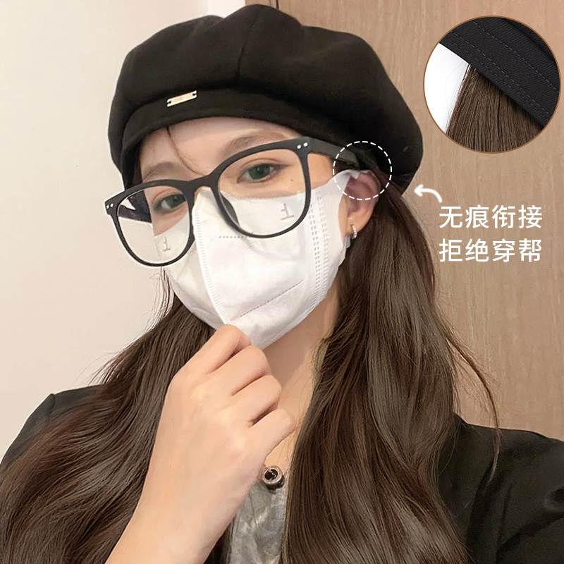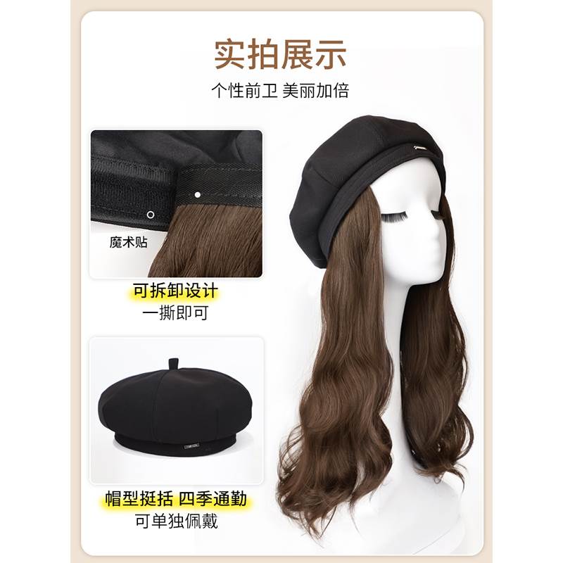 Cap wig female long hair integrated nemesis red new long curly hair berets natural emulation hair headgear wig sleeve-Taobao