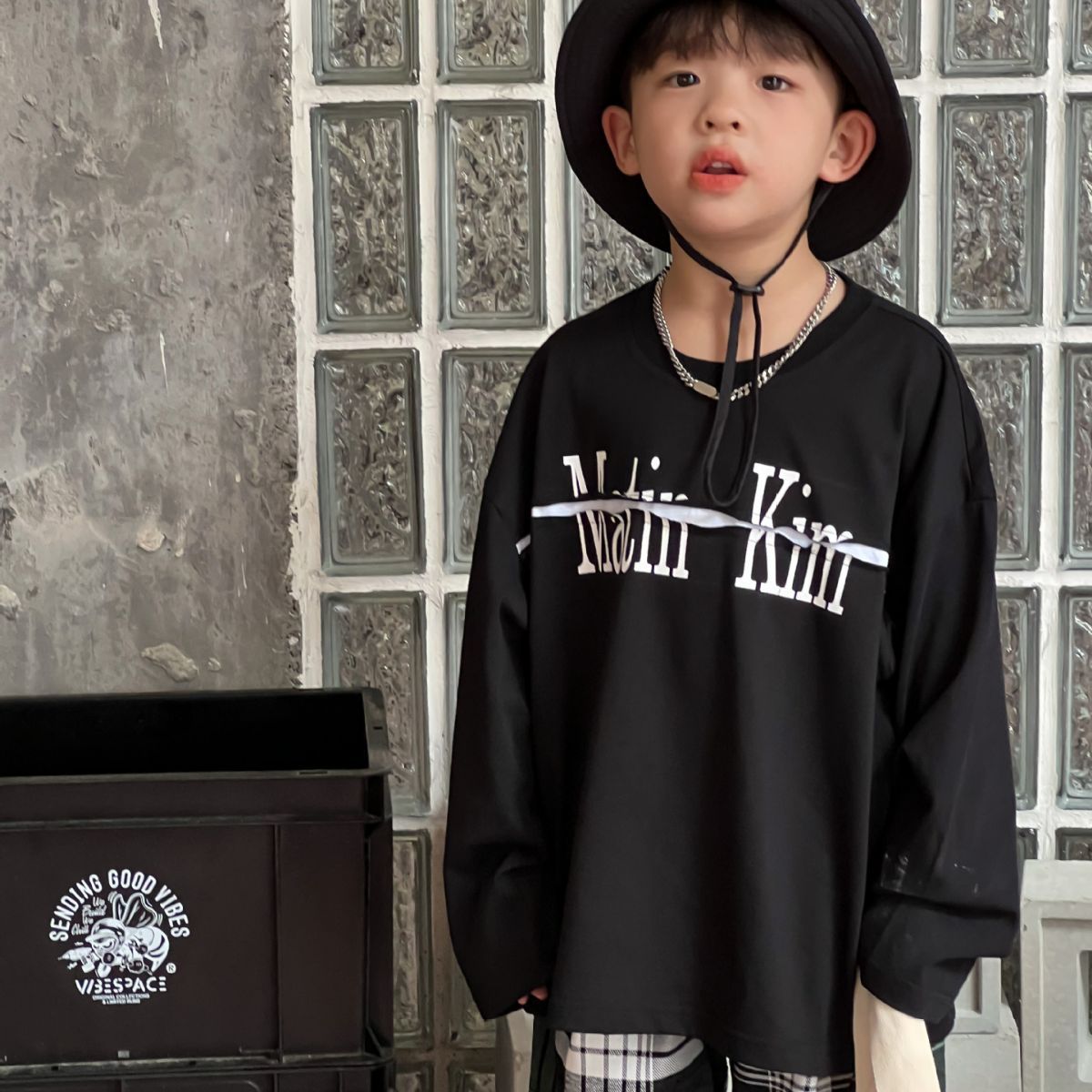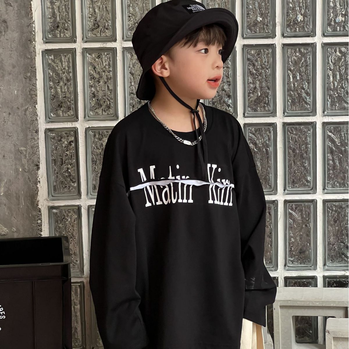 Boy long sleeve T-shirt fall ins children letter printed breaking hole collage foreign air blouses the baby round the undershirt-Taobao