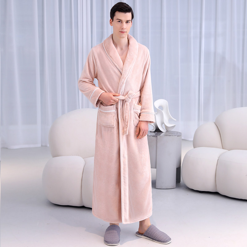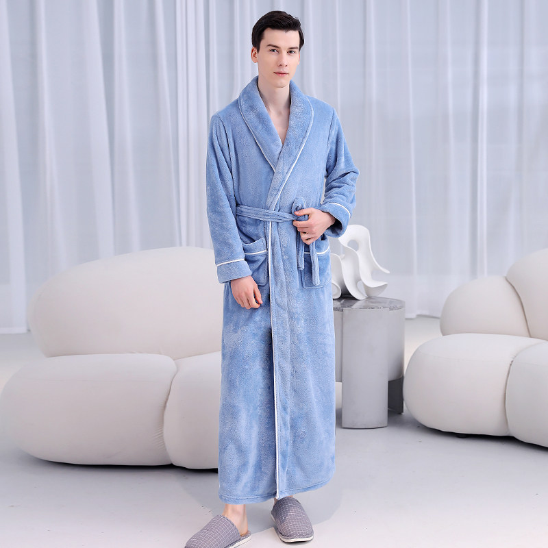 Sleepwear Men Sleeping Robes Long style Autumn Winter Coral Suede Thicken Garnter Flannel bathrobe men's burqa with increased code baths