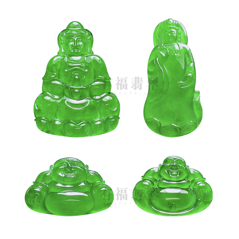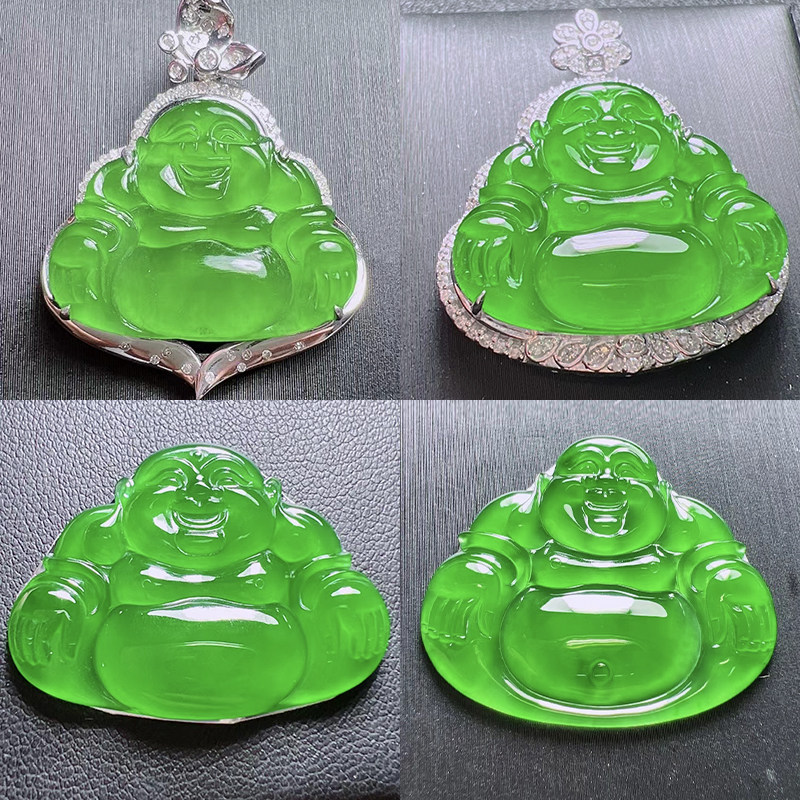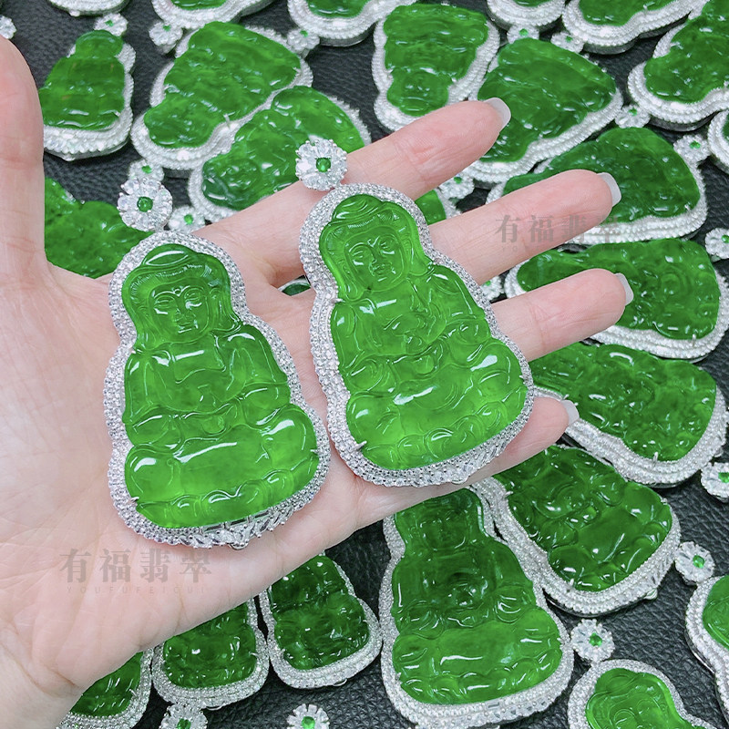 Natural A goods Guatemala stock emerald ice breed Buddha hanging pendant full green sun green Guanyin naked stone 18K gold pendant-Taobao