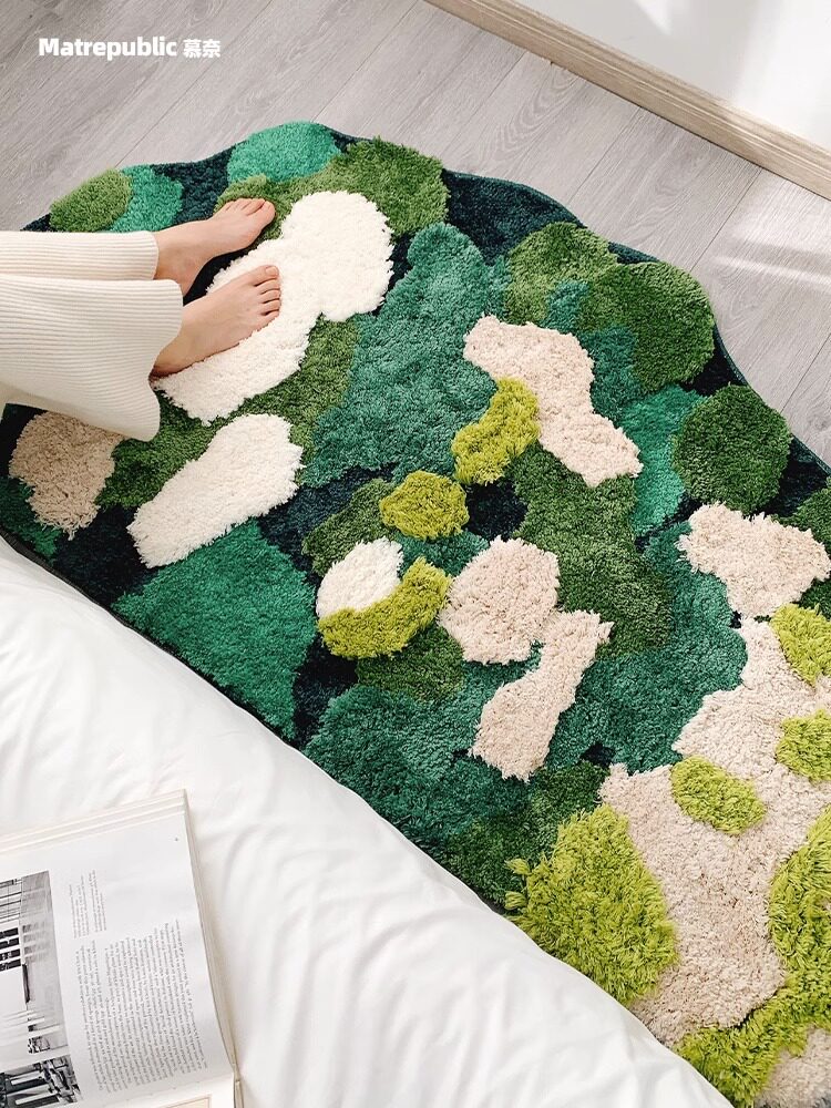 Green Moss Series Moss Carpets Handmade Living-room Bedroom Bedside Blanket Green Irregular Advanced Sensation Mat 2592-Taobao