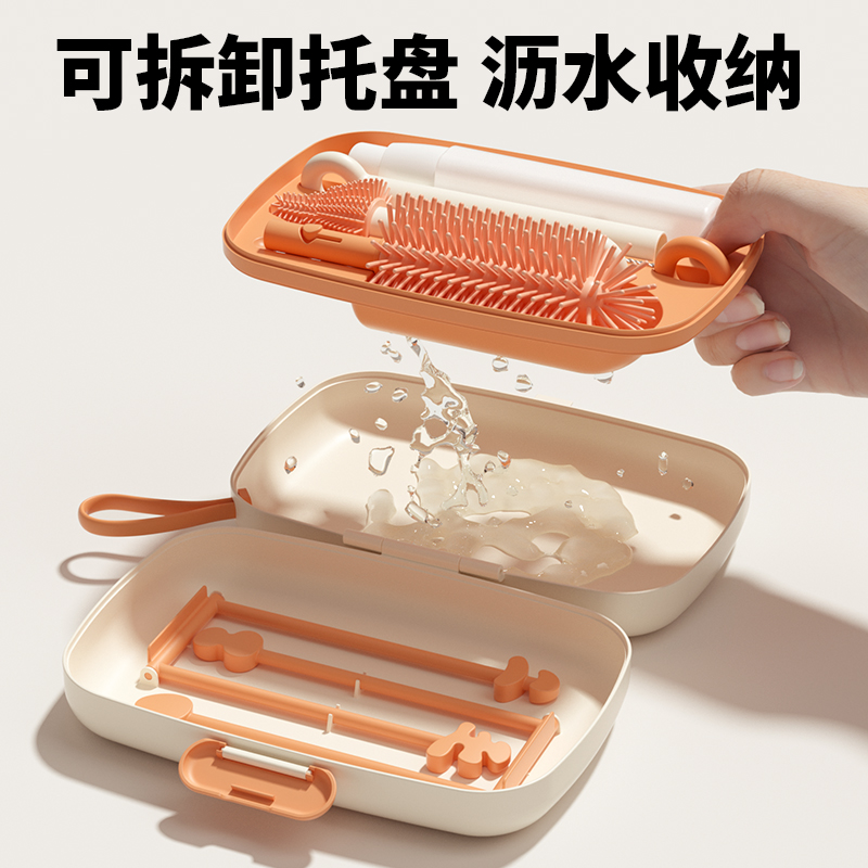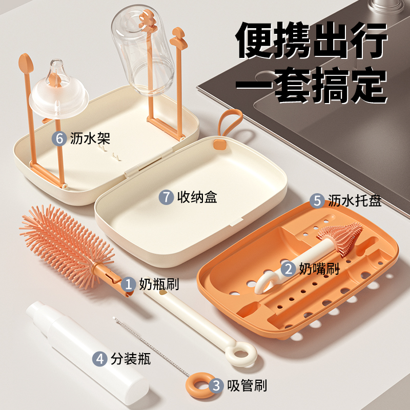 Baby-feeling silicone bottle brushed portable bottle brushed suit baby special washing bottle containing box feeding bottle washing brush-Taobao