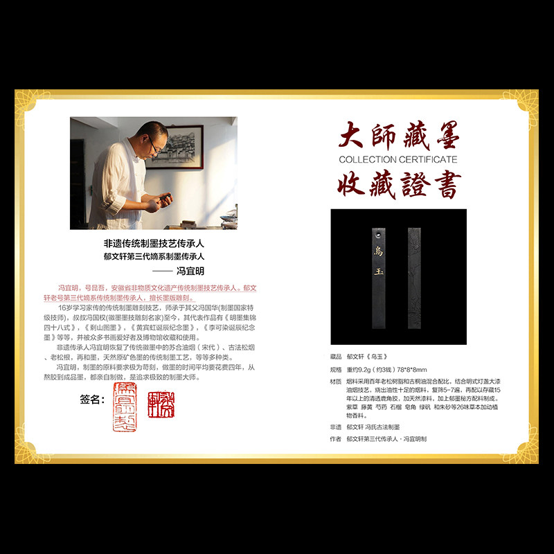 National non-relic Wenxuan Uyu jade ink strip Feng Yiming to make Ming Kilic Grease Oil Smoked Ink Bar Deer Antlers Ink Ingots Ink Ingots room Four Treasure Calligraphy Special Ink Block Endowed with Bixing-Taobao