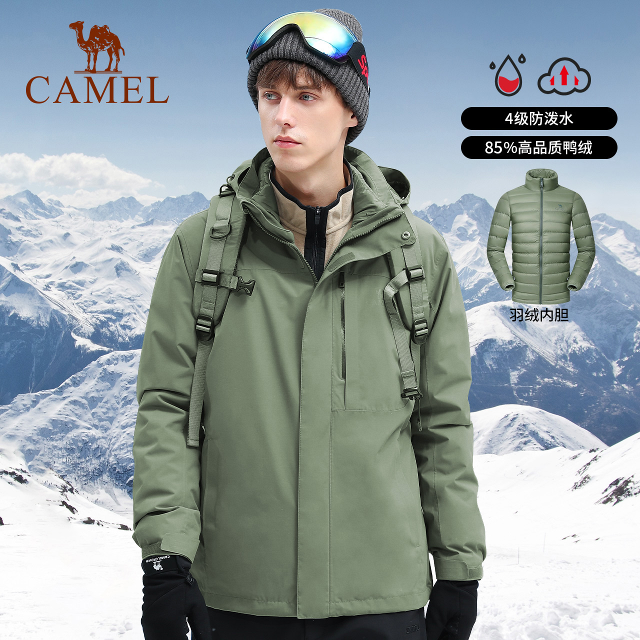 Extremely cold ski series camel down liner skipper male and female three-in-one thickened waterproof mountaineering jacket-Taobao
