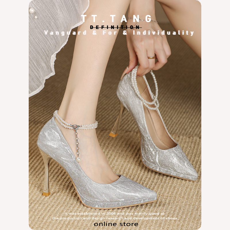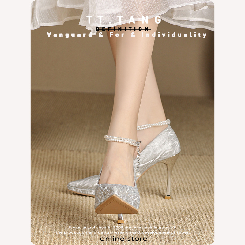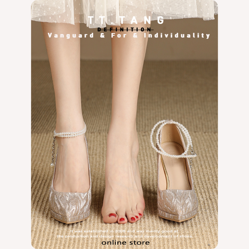 Tgang High Heels Baby Wedding Shoes Woman 2023 New Less Tired Footed Wedding Dress Bridal Shoes Gold Dresses Shoes-Taobao