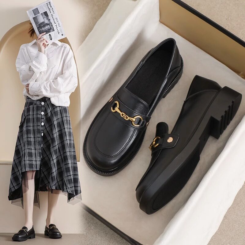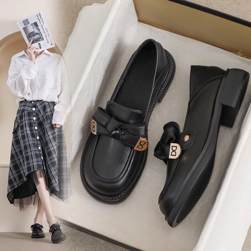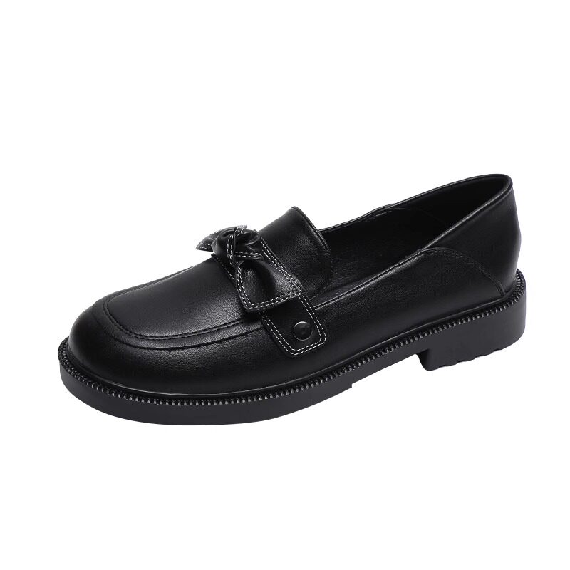 Real leather small leather shoes women's spring and autumn Inn wind small black flat bottom to work soft bottom bean beans 2023 working new single shoes-Taobao