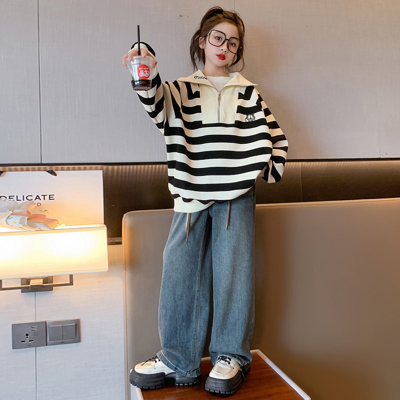 Girl Necropolis Spring Autumn Style 2024 New Ocean Qi Children Autumn Dress Women's Spring Striped Long Sleeve Loose Blouses-Taobao