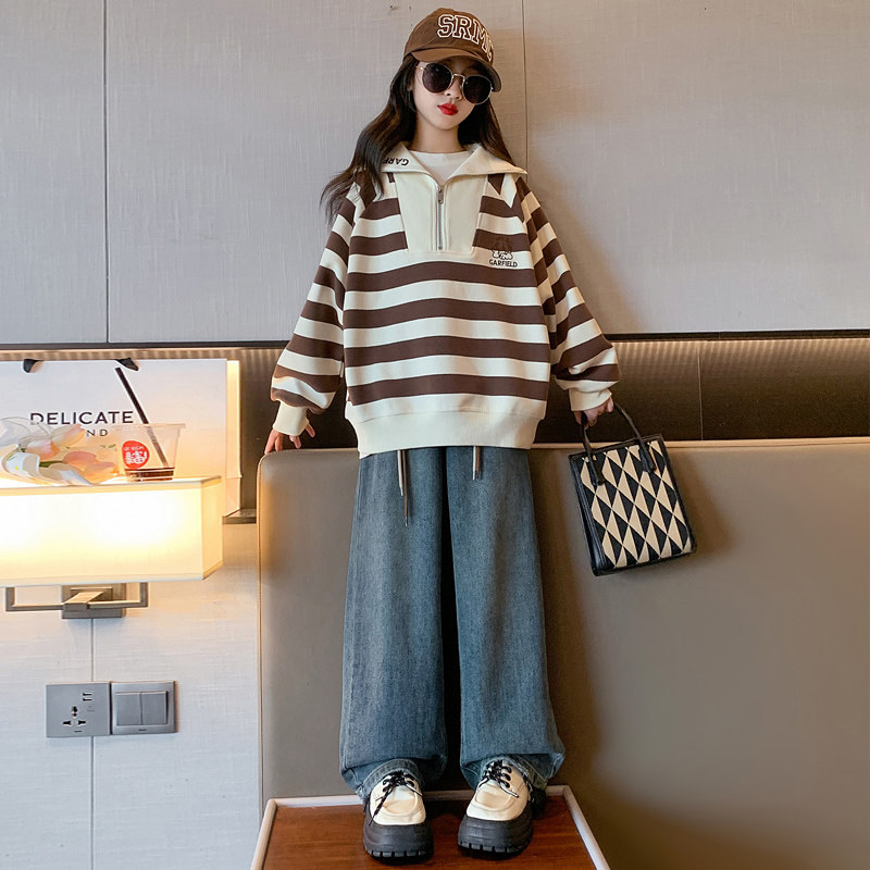 Black (striped sweatshirt) curry (striped sweatshirt) black (sweatshirt jeans) curry (sweatshirt jeans)