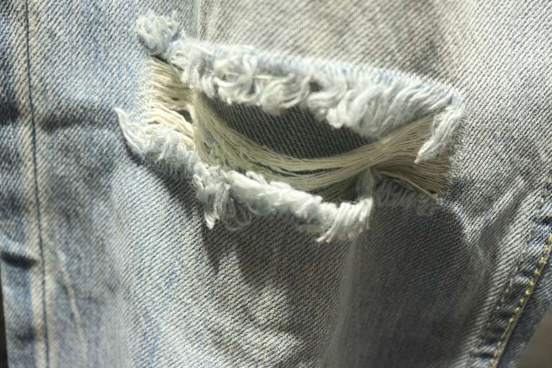 European Station Sashimi jeans Men's personality Grinding Holes Beggar Pants Blue Water Wash Advanced Sensation 90% Little Pants-Taobao