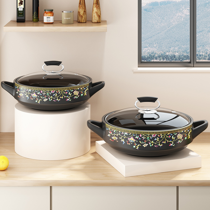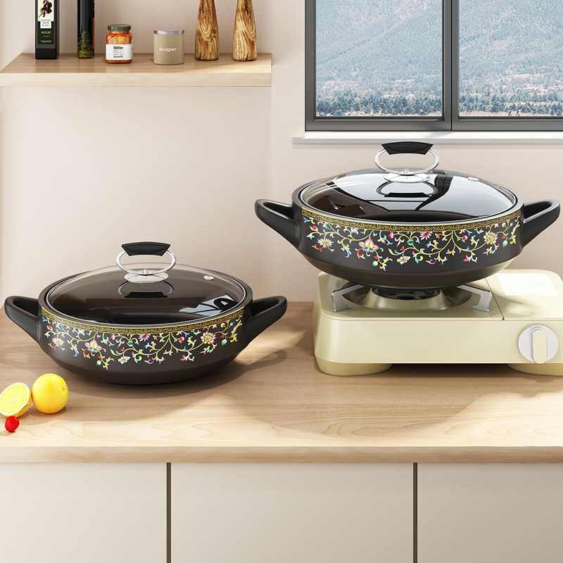 Wide mouth shallow pan casserole saucepan saucepan soup Home Minfire high temperature resistant gas stove dry burning without splitting stew ceramic sand pot-Taobao