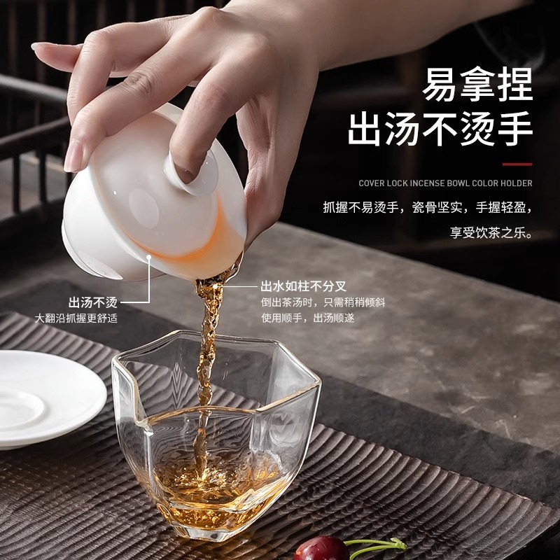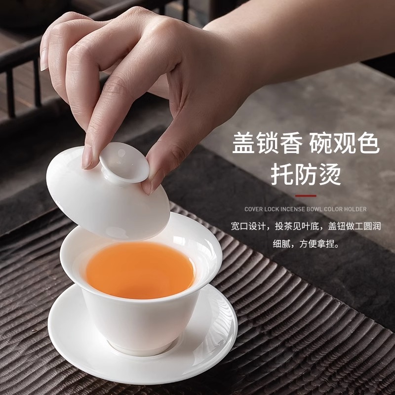 Goat Fat Jade Cover Bowl ceramic Gongfu Tea with single upscale Sancai Tea Bowl China Wind Upscale Home To Tea Bowl-Taobao