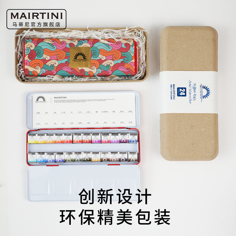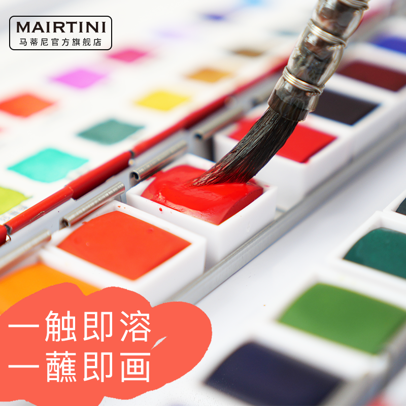 Martini New Shine Solid Watercolor Paint 12 Color 24 Color Suit School Gift Box Gift Packaging Professional Fine Art Portable Water Powder Beginners Students Painting Children Drawing Tools Single Block-Taobao