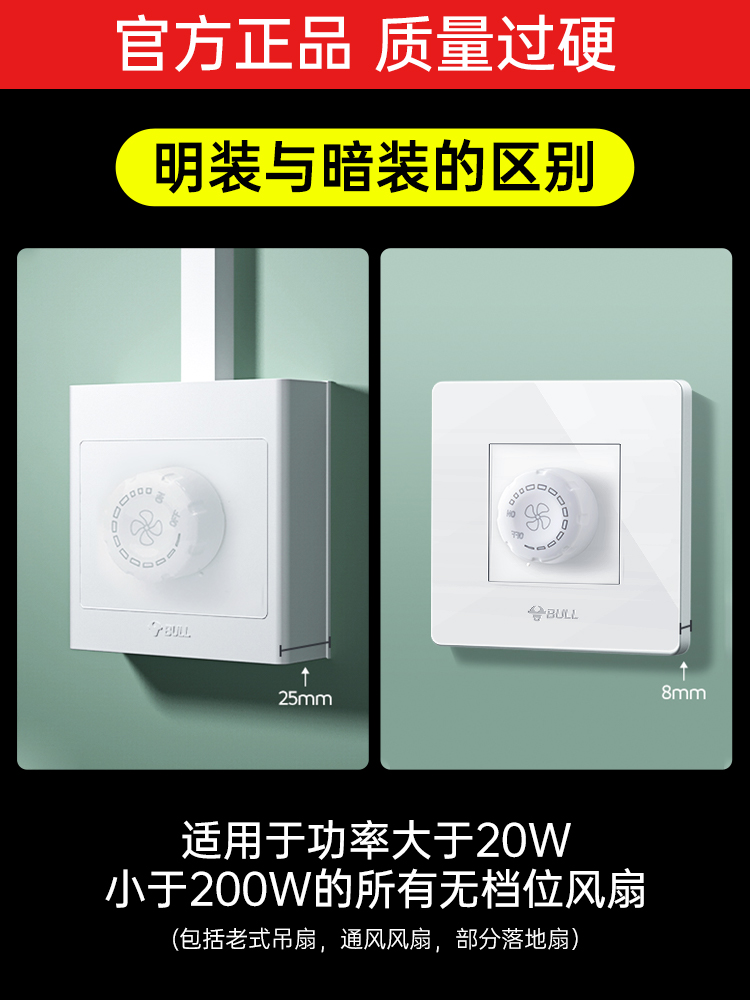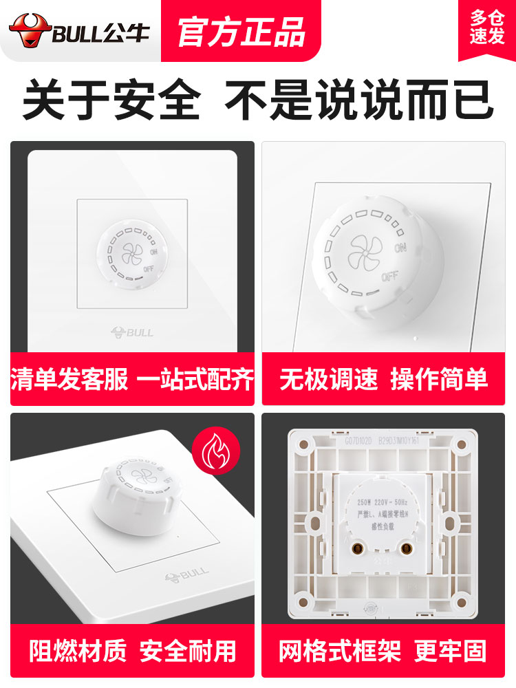Bull Electric Fan Ceiling Fan Speed Governor Switch Controller 220v Promise throttle fan switch 86 Type of concealed concealed-Taobao