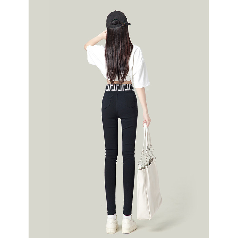 High waist beats bottom pants woman 2023 Fall new elastic tight slim black pants slim fit outside wearing little feet pants-Taobao
