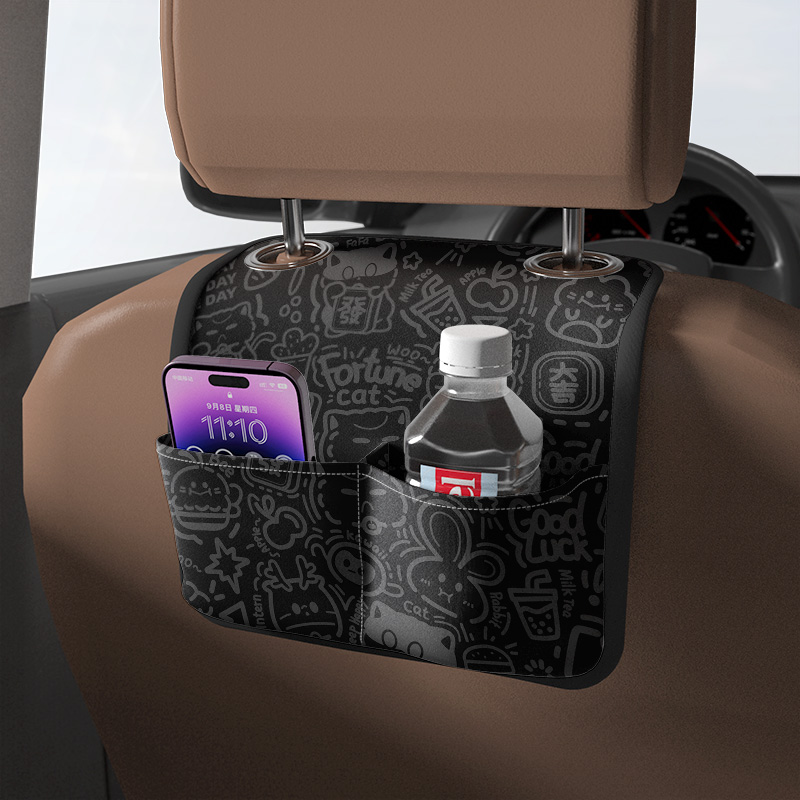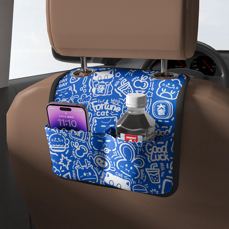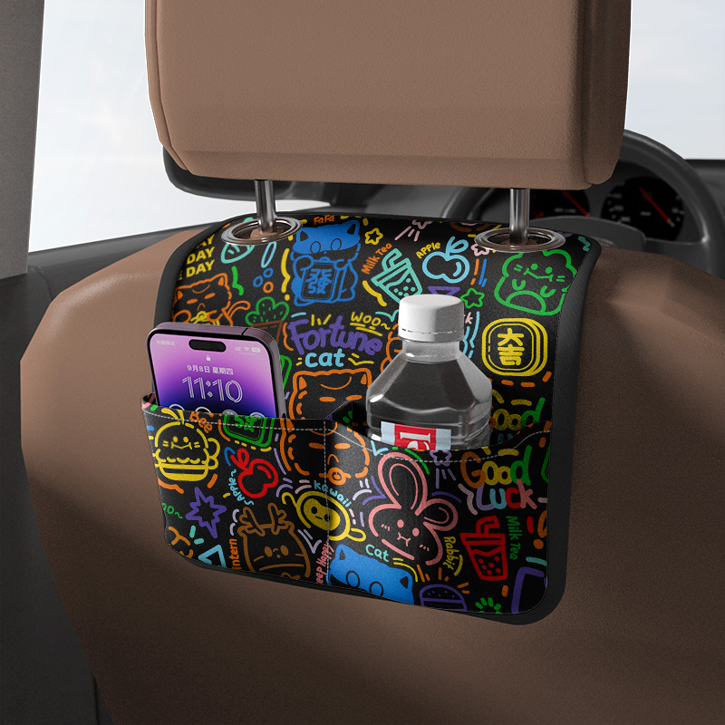 INKIx Merchants Fortune Cat Commune Rainbow Printed Car Seat Back Ring Collection Bag On-board Chair Back Hanging Bag-Taobao
