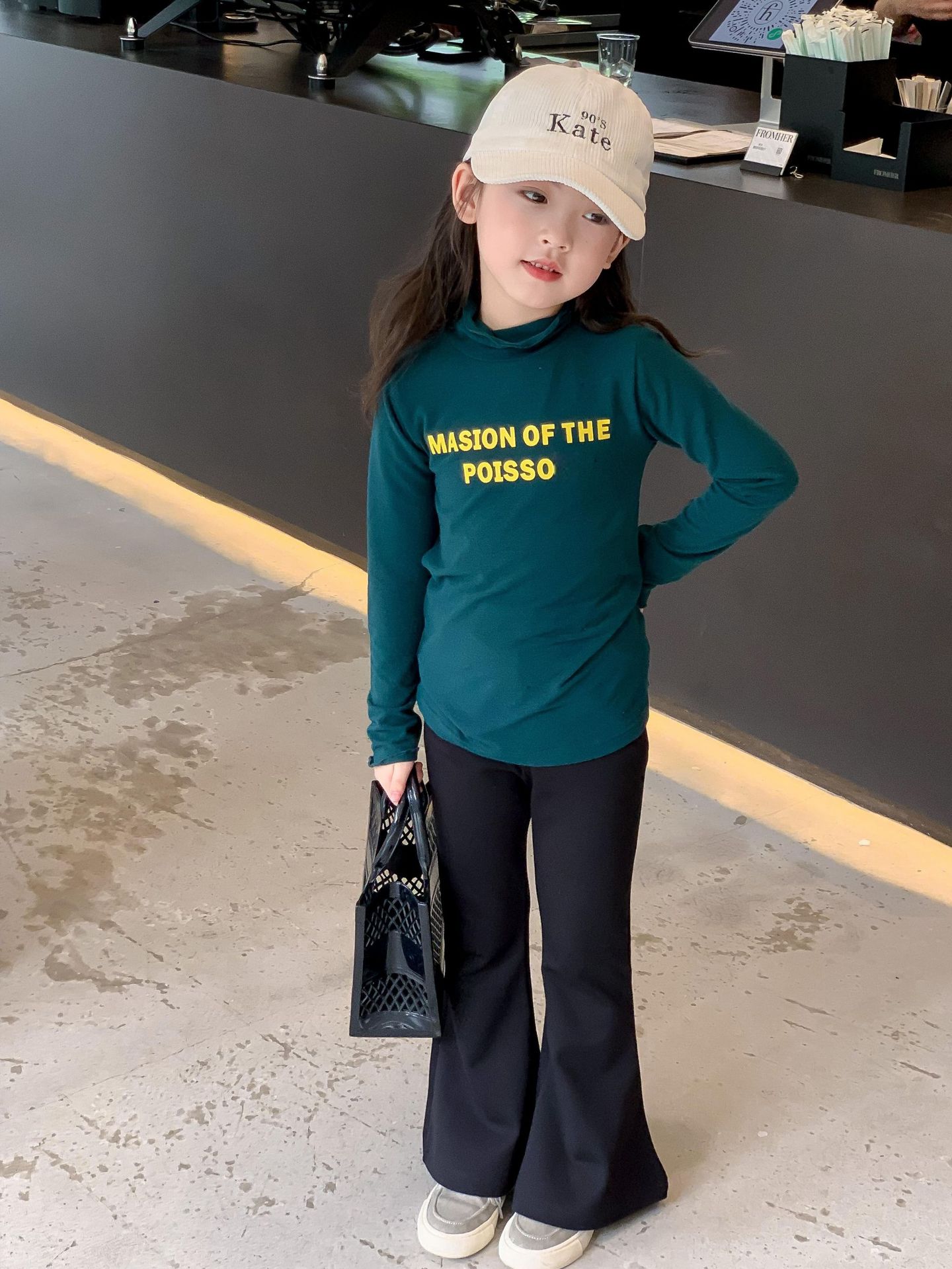 Girl's undershirt half height collar Spring autumn style children's letters printed long sleeve t-shirt baby fungus side inner lap clothes 5-Taobao