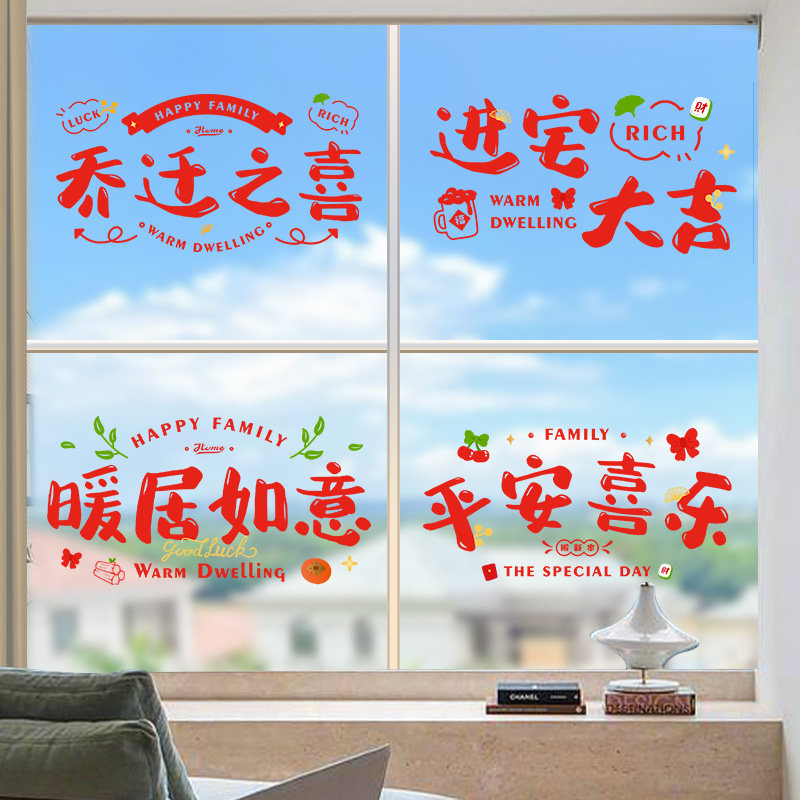 Joe Relocation Happy Decorative Window Floral Glass Electrostatic Sticker Moving Into Home Door Window Sticker New Residence Arrangement Ritual Supplies-Taobao