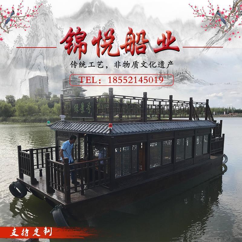 Cruise Ship Wooden Boat Painting Boat Boat Large Electric Cruise Ship Scenic Area Sightseeing Tourist Boat Water Catering Ship Imitation Ancient Wooden House Ship-Taobao