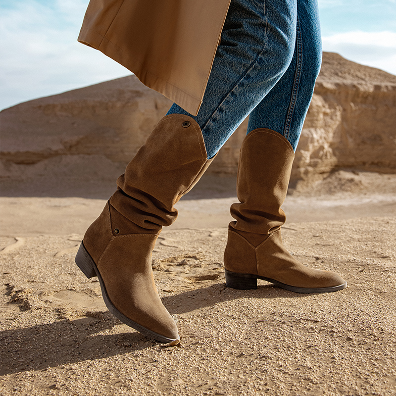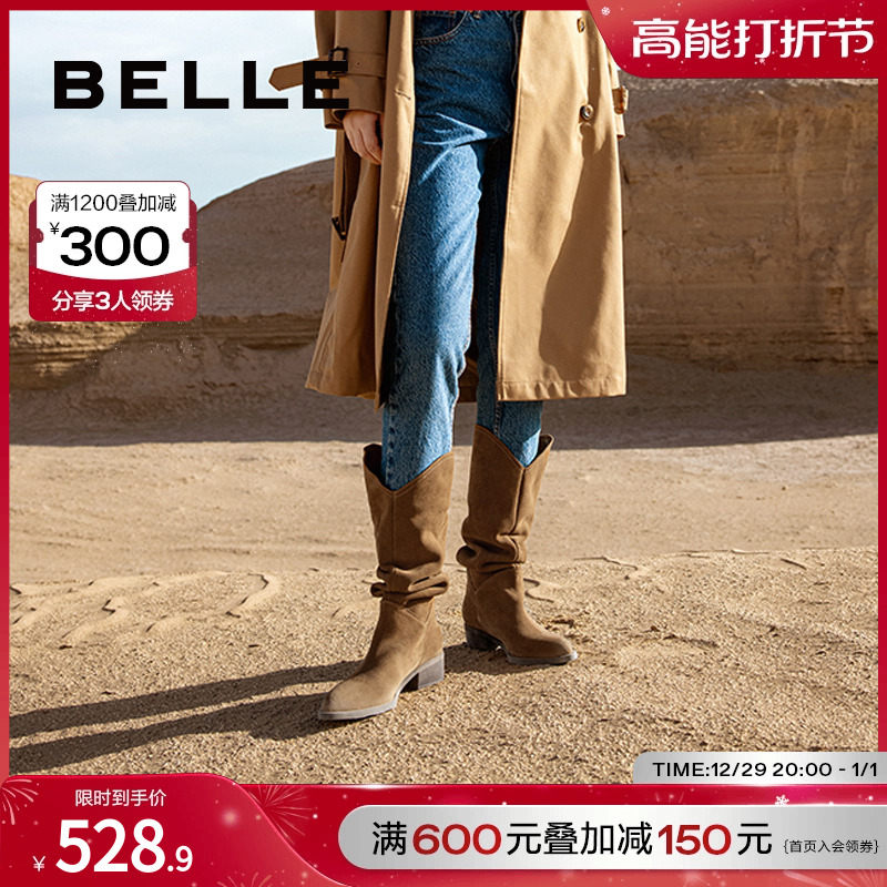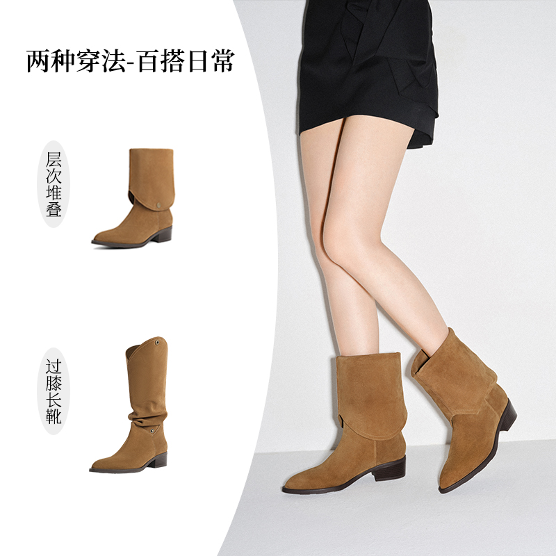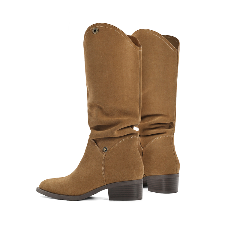 Thyme Heaps Boots Western Cowboy Boots Rider Boots 2023 Winter New Women's Boots Genuine Leather Long Barrel Boots BCYB1DG3-Taobao