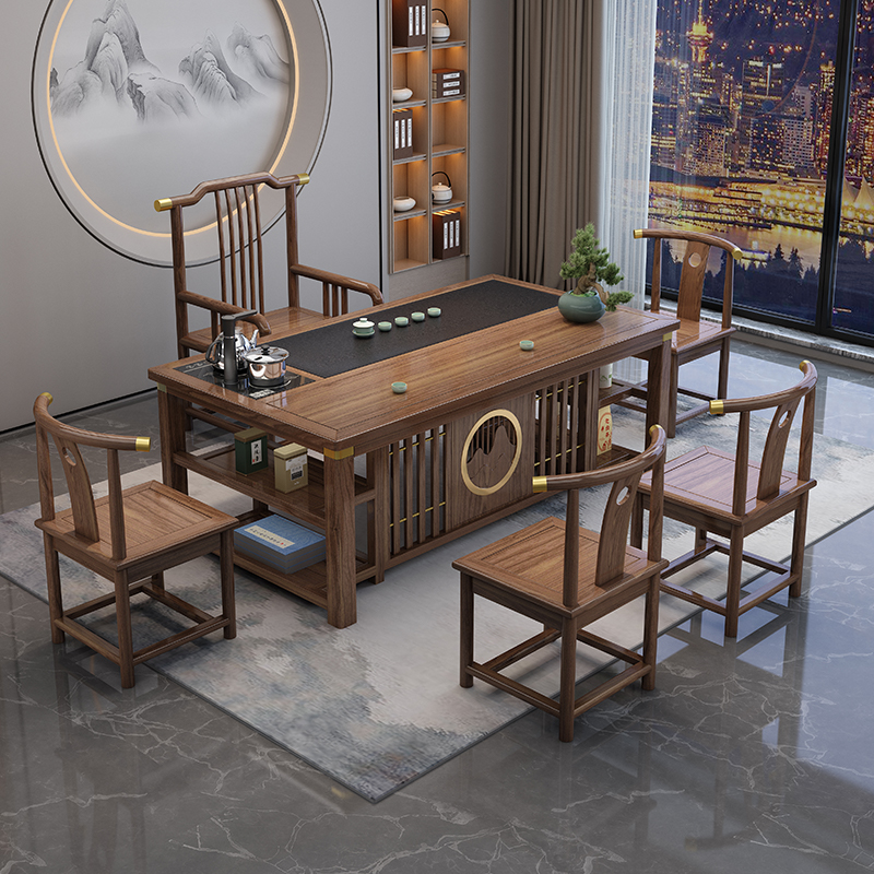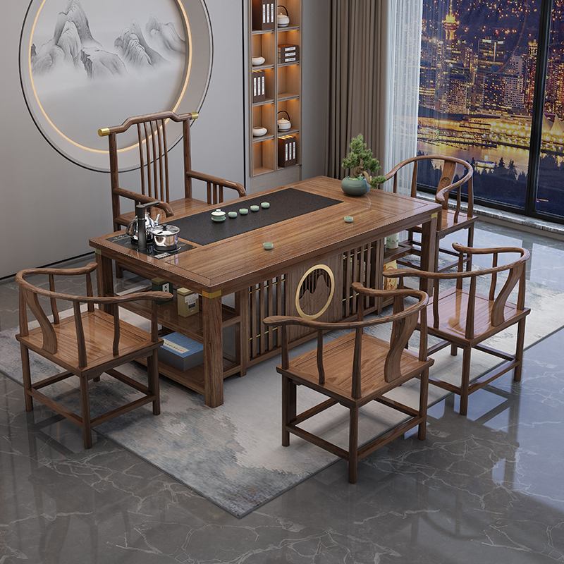 New Chinese style tea table and chair combination solid wood office kung fu tea house set all in one balcony small tea making table