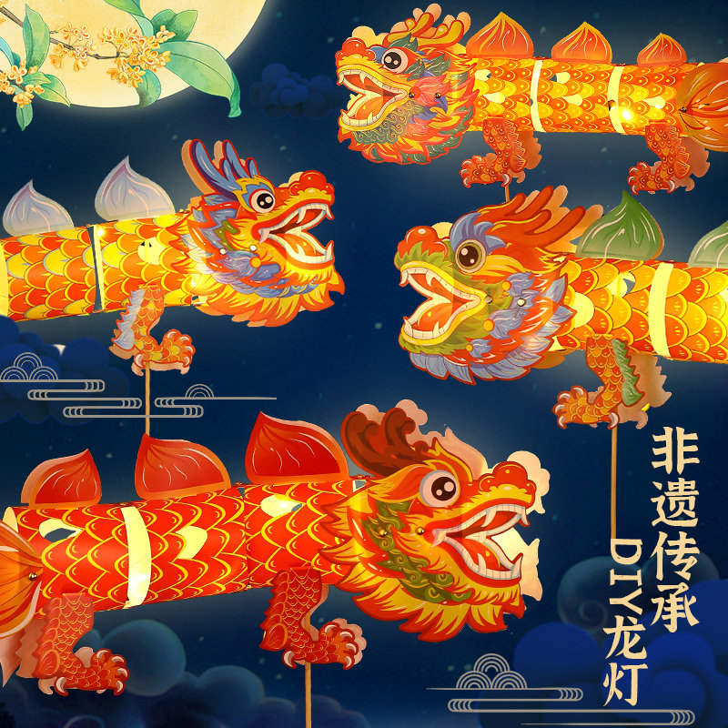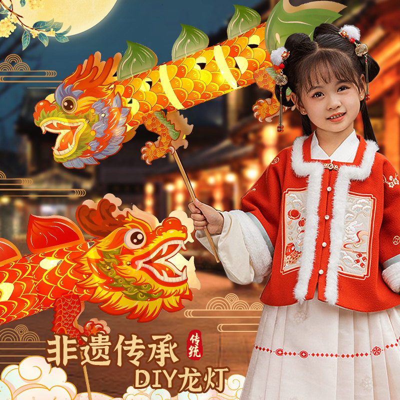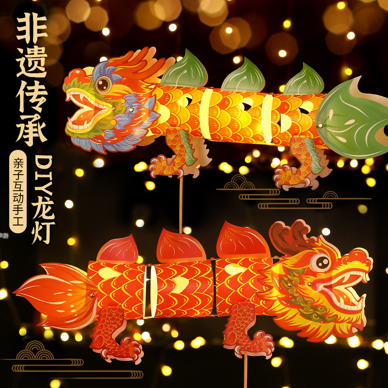 Dragon Year lantern Lunar New Year decorations Non-suicide dragon lantern Children's handmade diy material bag fish lantern New Year photo props-Taobao